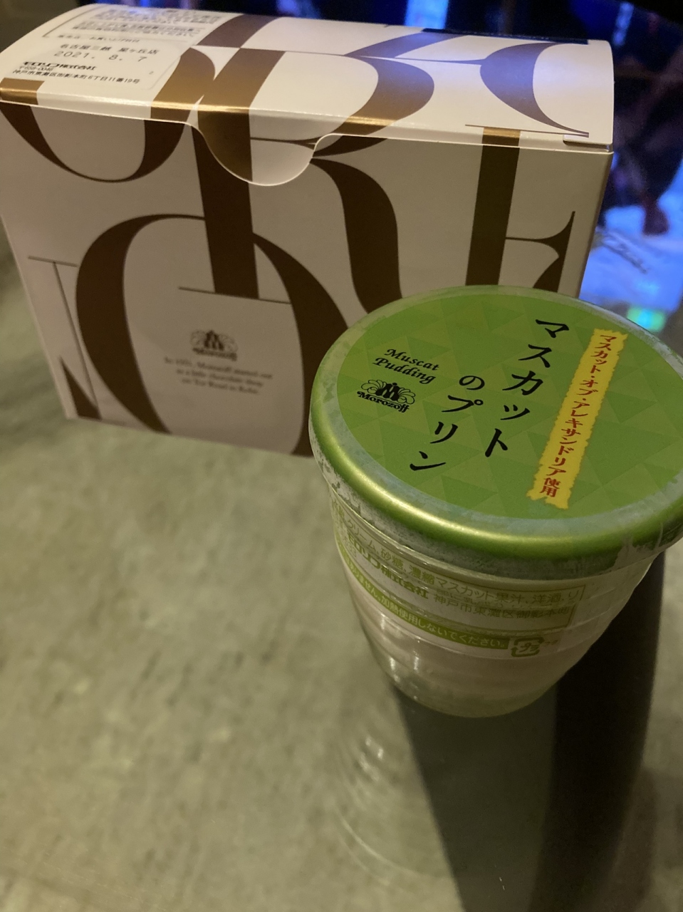 休日の買い物帰りに自宅用のスイーツを買いました。星ヶ丘三越のデパ地下の真ん中辺りのショーケースに沢山の美味しそうなプリンが並んでました。今日はマスカットのプリンを買いました。見た目も涼しく大変美味しいプリンでした。