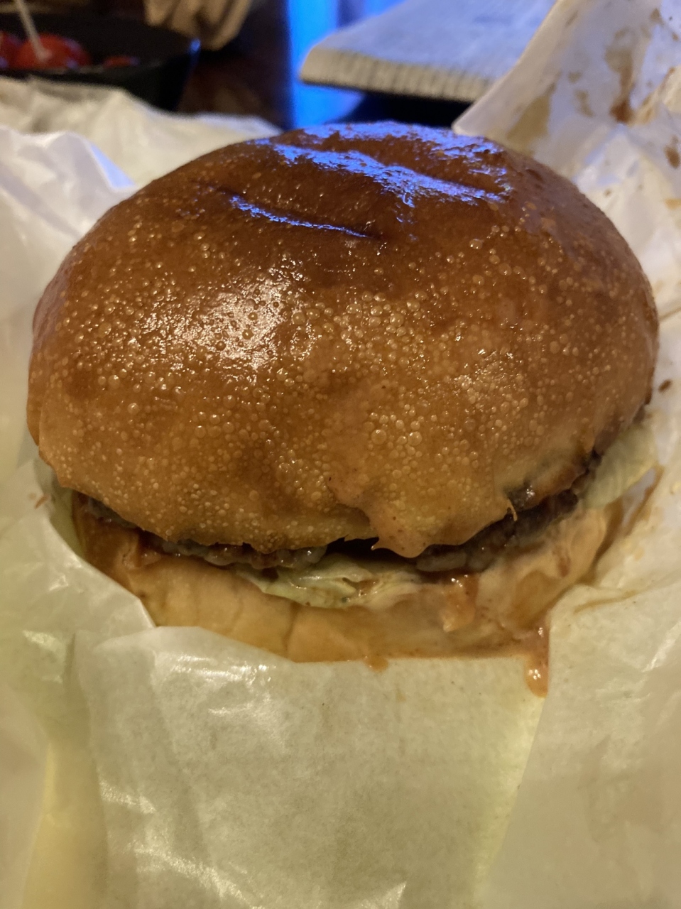 残業で遅くなり夕食作る気力なかったので自分を励ます為にとUberで美味しいそうなハンバーガーを見つけて注文しました。予想通りに大変美味しかったです。本覚バーガーとフライドポテトを頂きましたが、バンズがパティに良く合い絶品です。ソースも美味かった。