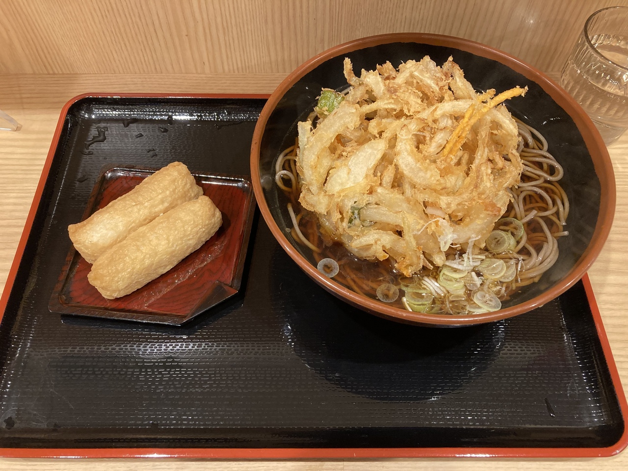 名古屋では珍しい立ち食い蕎麦のお店ですがカウンターの椅子席もありました。最初に食券を買ってから席に着き自分の番号を呼ばれたら取りに行く方式なので回転は早いです。大きなかき揚げとお稲荷さんのセットを頂きましたが、お出汁も美味しく大変満足です。