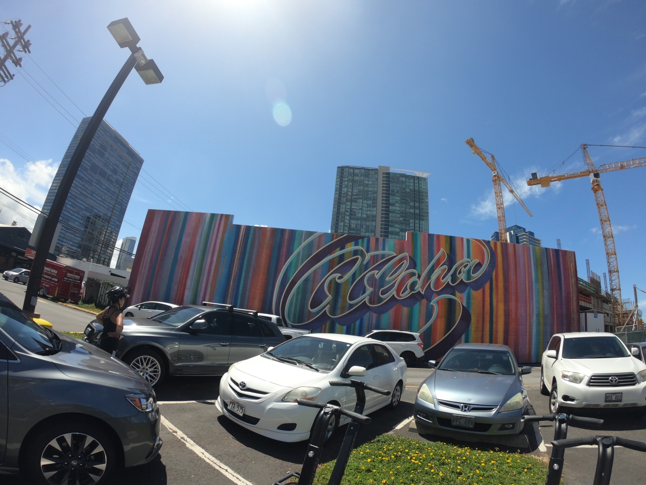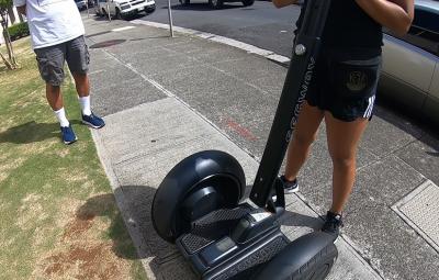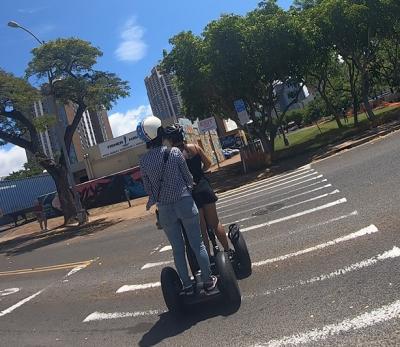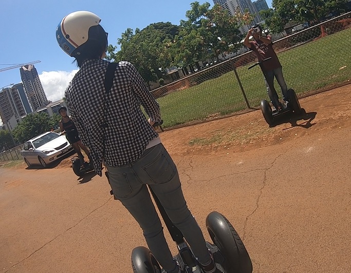 カカアコのウォールアートを巡るコースを夫婦2人で申込みました。ホテルまでの送迎込みで約2.5時間のコースでしたが大変楽しかったです。ワイキキ地区から車で約15分くらいのツアー開始スポットの店に到着し15分くらいの練習後に観光に出発、私は割と簡単にコツを掴んで乗れましたが、うちの奥さんは最初はインストラクターのお姉さんに引っ張ってもらいましたが最後の方は結構一人で乗れていたと思います。インストラクターのお姉さんと もう一人ガイドさんが同行してくれて写真もじゃんじゃん撮ってくれます。ウォールアートを効率よく周って あっという間に時間が過ぎました。次は海を眺めながらのオーシャンコースをトライしたいです。