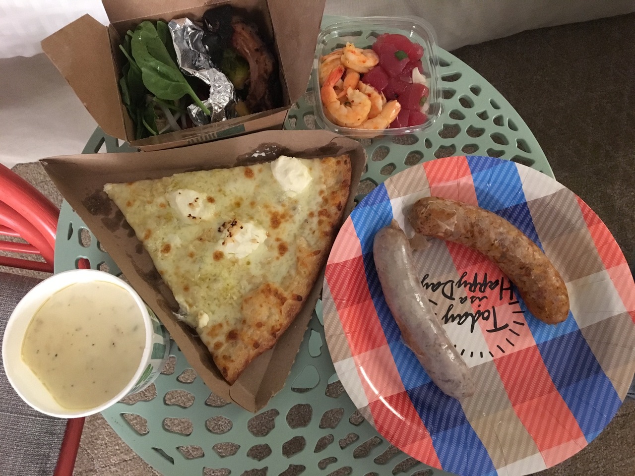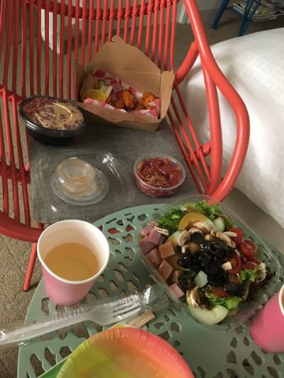 ハワイに着いた初日の夕食はデリで、と決めていたのでカラカウア通りを散歩しながらABCストアでサラダを、インターナショナルマーケット プレイスでチキン ウィングを買い、Pokeをココ コーヴで買いました。何種類ものPokeがあり買い過ぎました。でも美味しかったです。