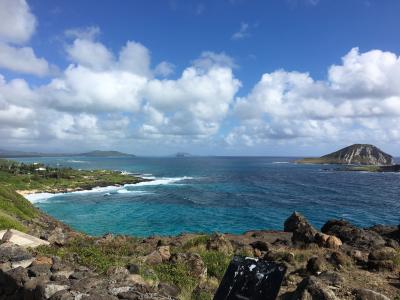ワイキキからの小ドライブでハナウマ湾を過ぎて数分で行けるビュー ポイントです。自家用車以外にも数台のマイクロ バスが停まっておりオプション ツアーで立ち寄るコースなのだと思います。打ち寄せる波が海岸の岩場から吹き上げる様子が美しい海を背景に眺める事が出来ます。