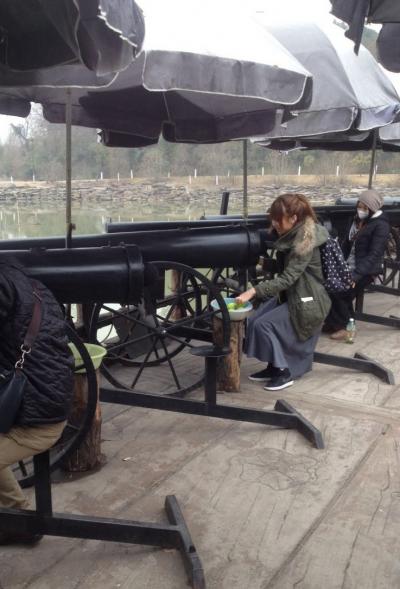 大砲を打つゲーム。一人10元で8つのテニスボールをもらえました。