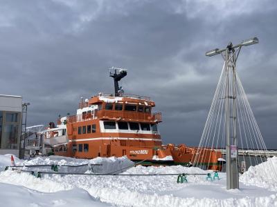 遠軽からバスで紋別に到着し、目的である流氷観光船のガリンコ号に乗ろうと...