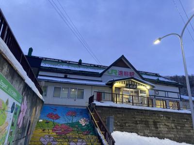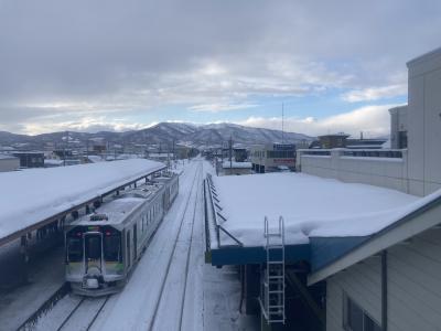 余市駅に到着しました。少し晴れてきたのが良かったです。