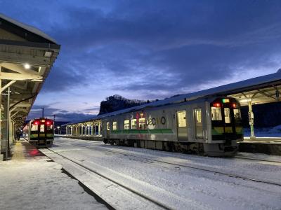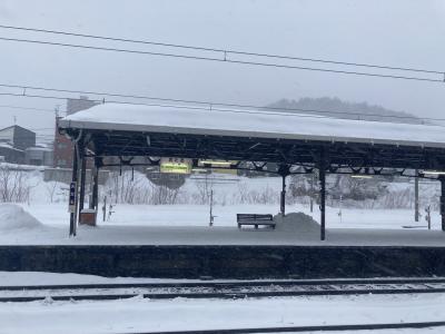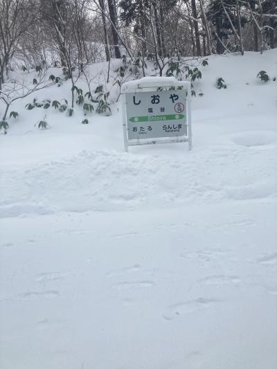 小樽の隣の塩谷駅に着きました。駅のホームに雪がたくさん積もっています。
