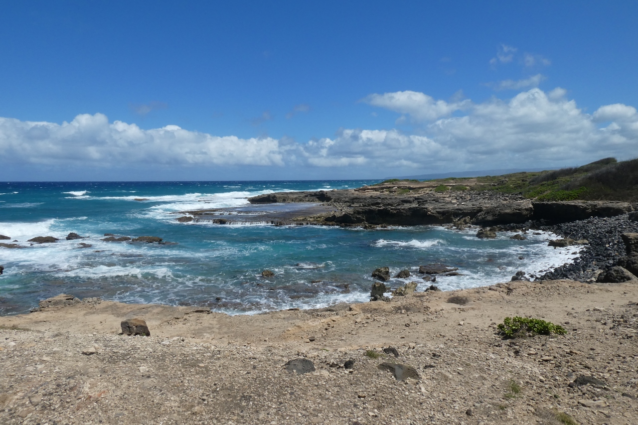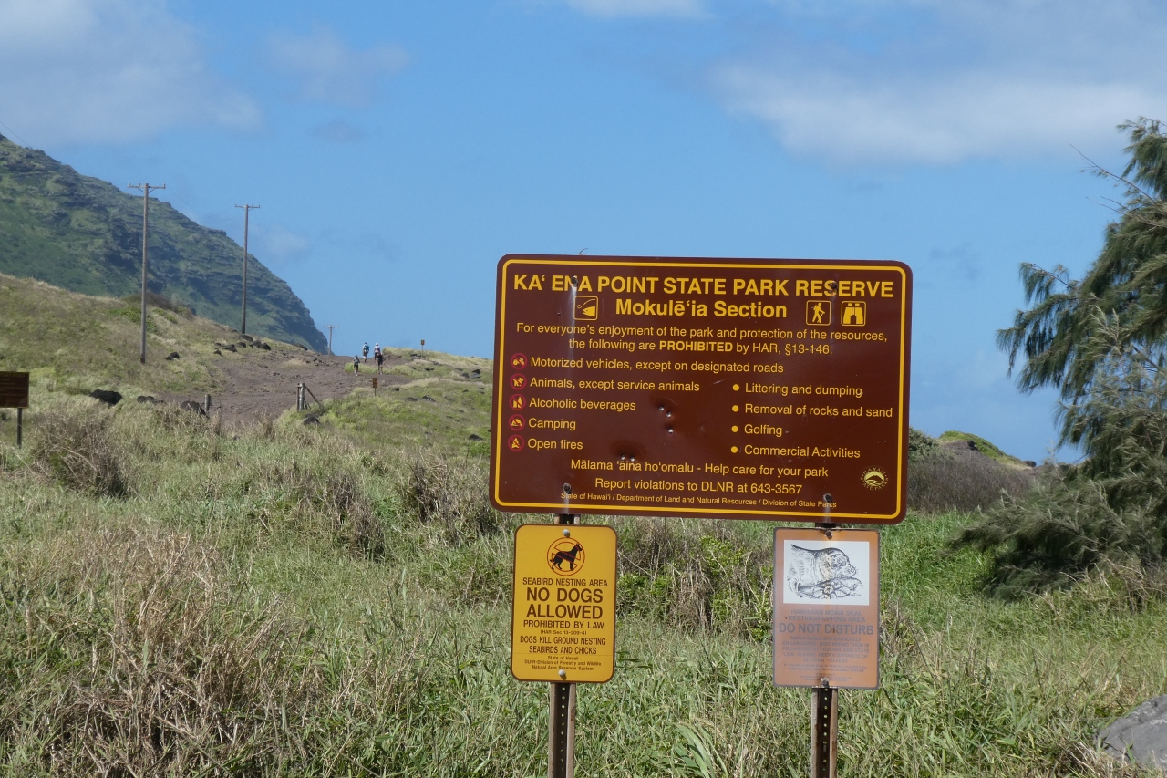 カエナポイントへの道はリワード側のヨコハマベイからとノースショアー方面からの2通りがあるが、何度かヨコハマベイには訪れているものの駐車状況に一抹の不安があったので、今回ノースから挑戦した。驚いたことに駐車場は欧米人やロコの車であふれかえっていいたので、安心して駐車した。ノース側からの道は入口からしばらく凸凹した道が続き結構苦戦した。途中の景観は素晴らしく、少しは疲れを癒してはくれるが、かなりハードな道のりである。ポイントではコアホウドリは多く観察されたが、モンクシールを見かけることはできなかった。ただすぐそばで鯨のテールスラップなどがみえたのには興奮した。費やした所要時間は往復で約4時間ぐらいであった。