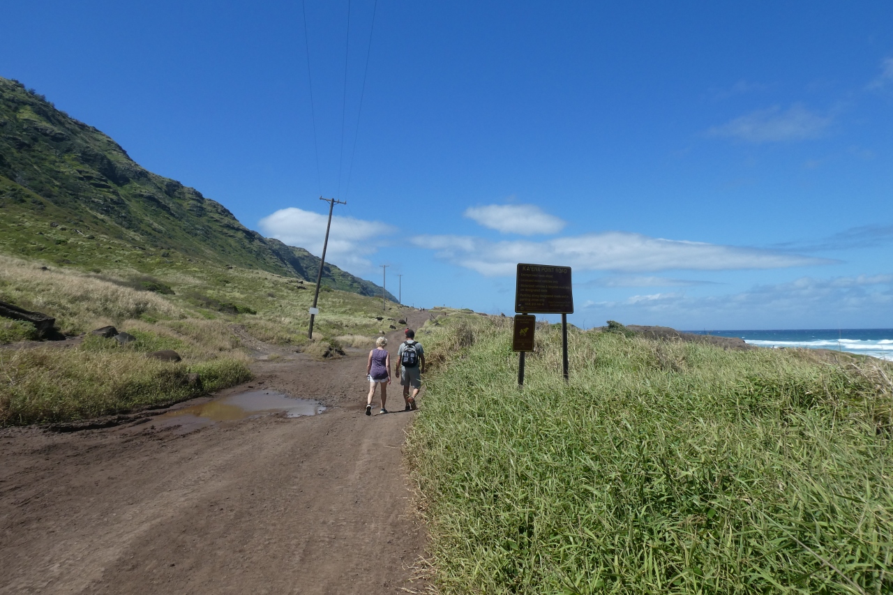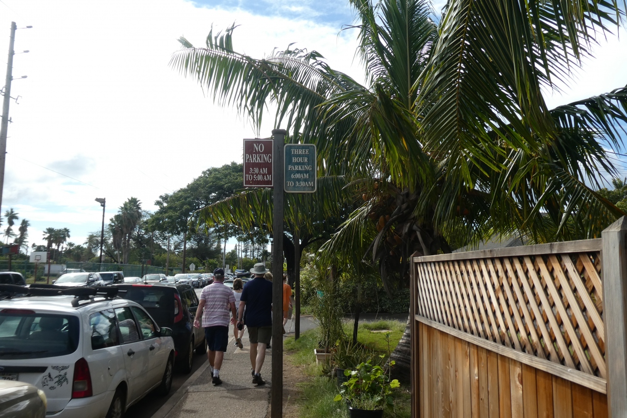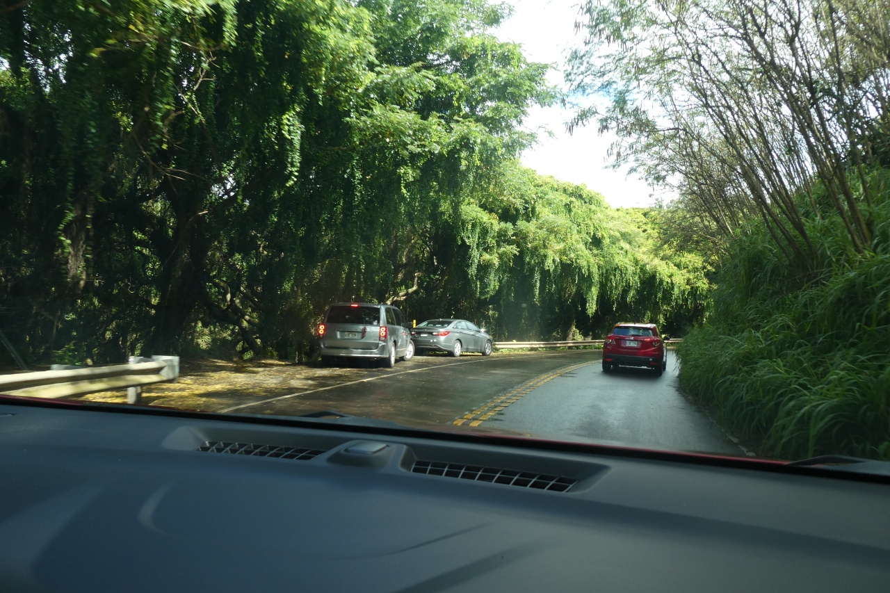 カアナパリビーチベースであればホノピラニHWY(HI30W)を西進して約30分ぐらい走行したところの路肩が比較的大きな自然の駐車場になっており、多くの車が駐車しているので、初めて訪問したひとにもすぐわかる場所である。ただ雨期にはホノルアベイの先は落石に注意しなければならないだろう。