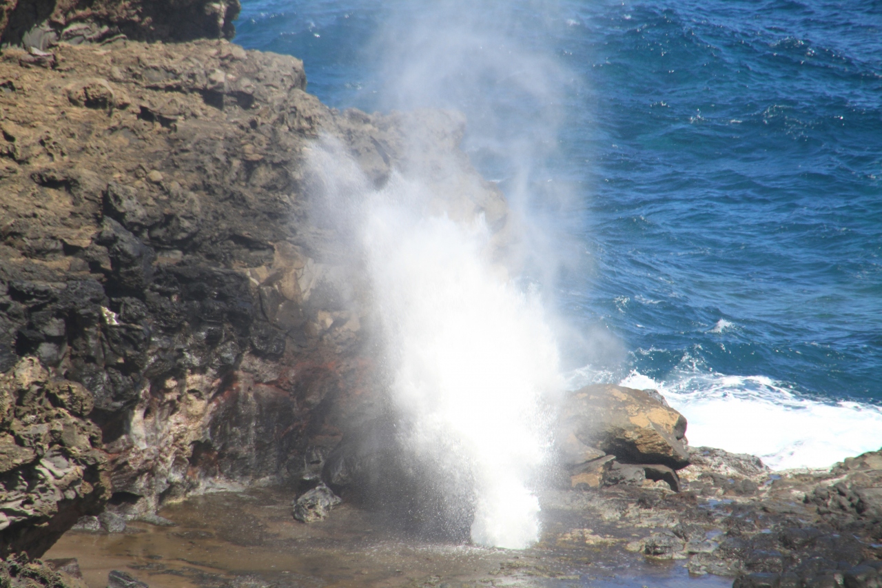 また、ここを訪れるにはツアーかレンタカーを使用しなければならないが、周囲は東マウイの濃い緑と青い海が見渡せて景観もよく、ブローホールまで山肌を100数十メートル降りていけばホールのそばまで行くことができる。潮の干満にもよるが激しいときにはかなりの高さまで噴き吹きあがるので自然の現象を堪能させてくれる。