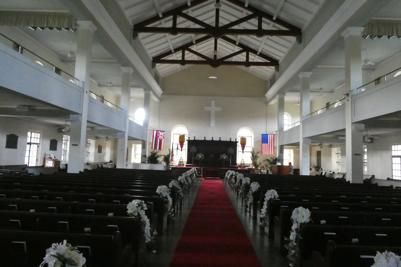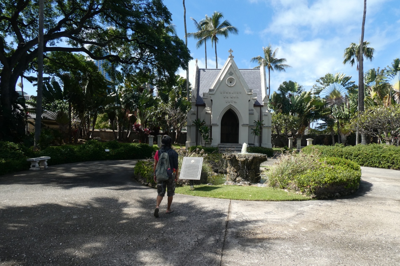ダウンタウンの最高裁判所やカメハメハ大王像を訪問時、ワイキキ方面に50メートルぐらい戻ったところでホノルル市役所の前にサンゴ石で作られた美しいオアフ島最古のこの教会がある。教会内の見学は自由にでき、中は大きなパイプオルガンや格調高い椅子等があり、王家の人々の肖像画も展示されている趣きのある場所である。入口近くにはハワイ王国6代のルナリロ王の墓もあるので是非訪問してはどうだろうか。
