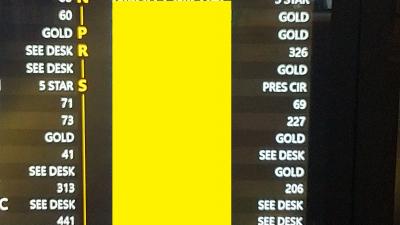 レンタカー会社事務所前には会員番号と車の配置場所が電光掲示板に表示されており事務所での手続きが全くいらない。出庫時のゲートでパスポートを見せるだけですむ。車は最新式でシフトレバーがなく中央のアームレストにある円形のダイヤルを回してギアチェンジする。最初は戸惑うがなれればいたって簡単たである。