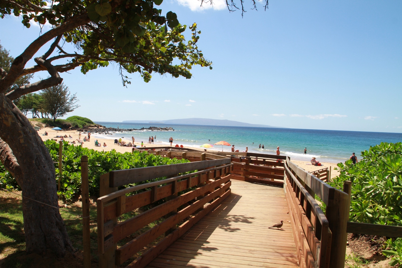 カアナパリ地区に滞在していても車で30分〜40分の距離ぐらいなのでそれほど不便ではありません。当然キヘイ宿泊者には大変便利でホームレスも皆無で綺麗なビーチが?〜?までの3カ所あります。駐車場も十分あり、砂の質もよく海も淡いブルーです。家族連れやカップルには適したビーチでしょう。