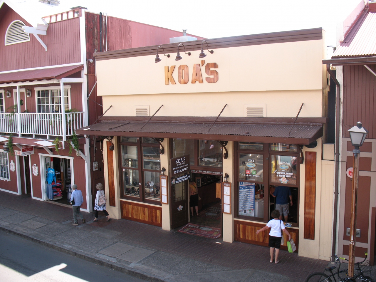 ラハイナのフロントストリート沿いに新しくオープンしたオーシャンフロントのレストランKoa's Seaside Grill。カテゴリーはアメリカンに分類しましたが、パシフィクキュジーヌかも。2階席もあり見晴しは最高ですが、パラソルしかないので暑いのがたまにきず。バーガーにタコスに魚料理とあります。わたしの一押しはバーガーに生ビール、最高です。