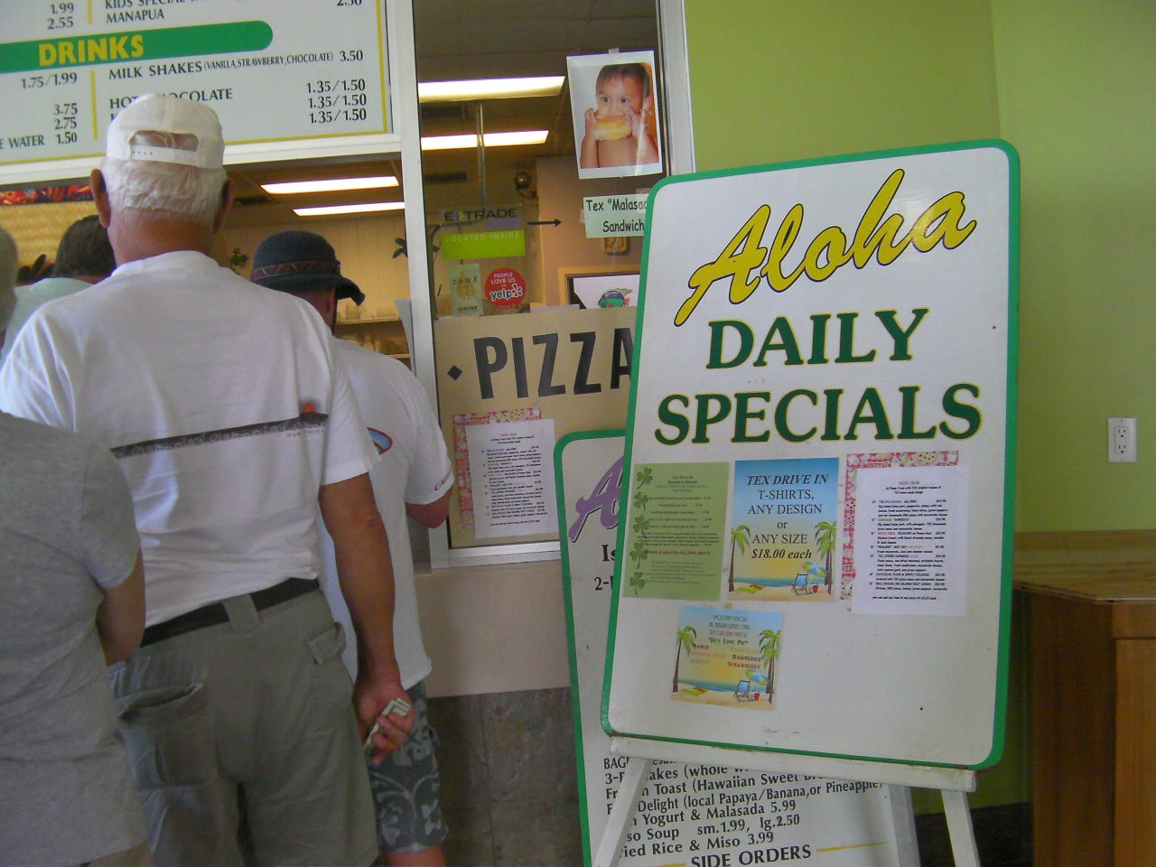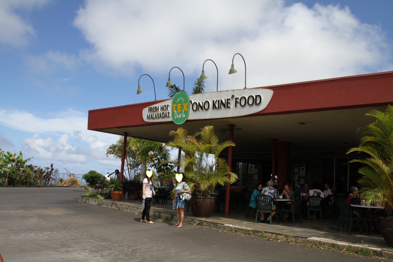 ビッグアイランド観光で外せないワイピオ渓谷見学からの帰りは(行きでもよいですが)ここで有名なマラサダを食べましょう。食事もいろいろありますので、休憩にはもってこいの場所です。コナ方面から19号線Mamalahoa Hwyをヒロ方面に向かい、映画で有名になったHonokaaに入る道Pakalana Stの交差点にありますので、比較的見つけやすいところにあります。