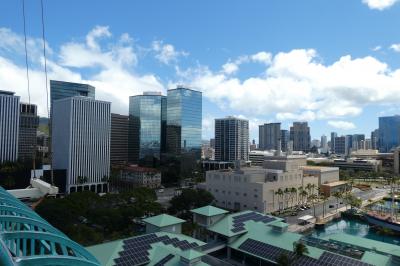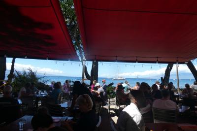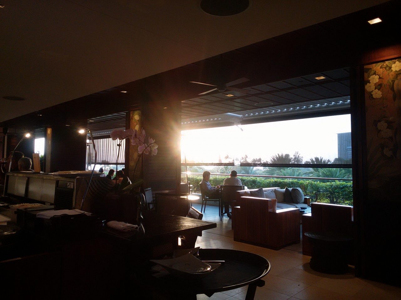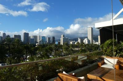 オアフでは大体1~2度はハッピーアワーに訪れたい場所の一つです。トランプタワーの6階にある景観の良さもさることながら、T氏とは違いスタッフ教育がよくされていて、よく気がつくし親切です。私達の最大のお目当てはここのビキニブロンドが4ドルとマウイブルゥーイング本体のハッピーアワーより安いことでしょう。料理も珍しい食品を使ったパームシュリンプサラダやナチョスなども比較的安く設定されております。