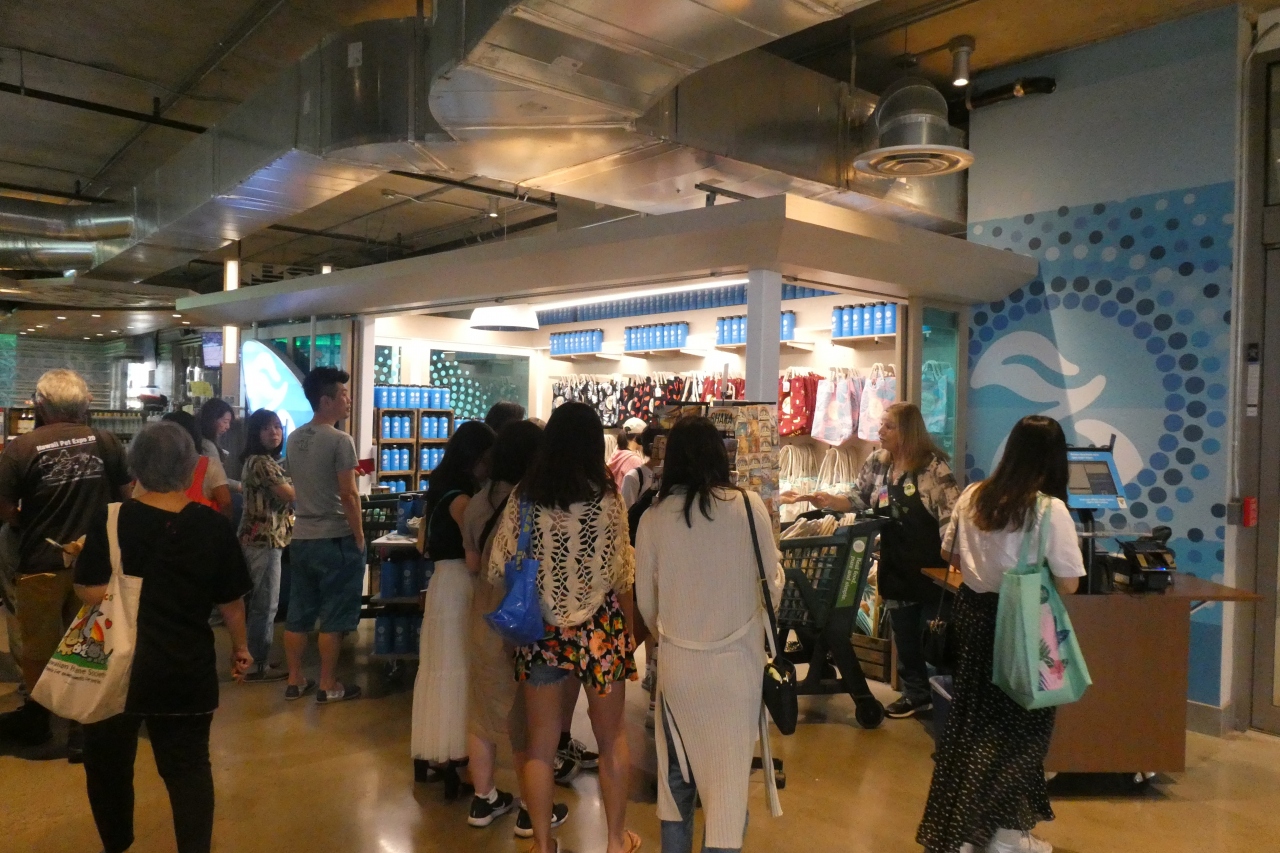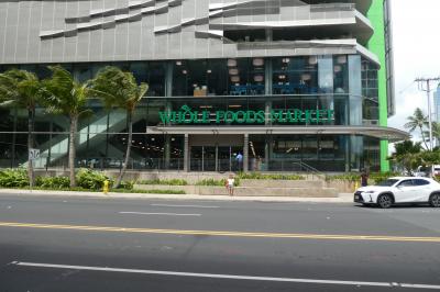 ワイキキから近いカカアコ地区にカハラやカイルア店より大きなアマゾン傘下になったホールフーズ店ができたのでウォールアート見学ついでに寄ってみた。カカアコの開発地区にできた新しいビルに入っているので駐車場も大きく、店内は綺麗で広く1階にはドリンクコーナーもあり、2階にも椅子とテーブルが設置された休憩スペースがある。
