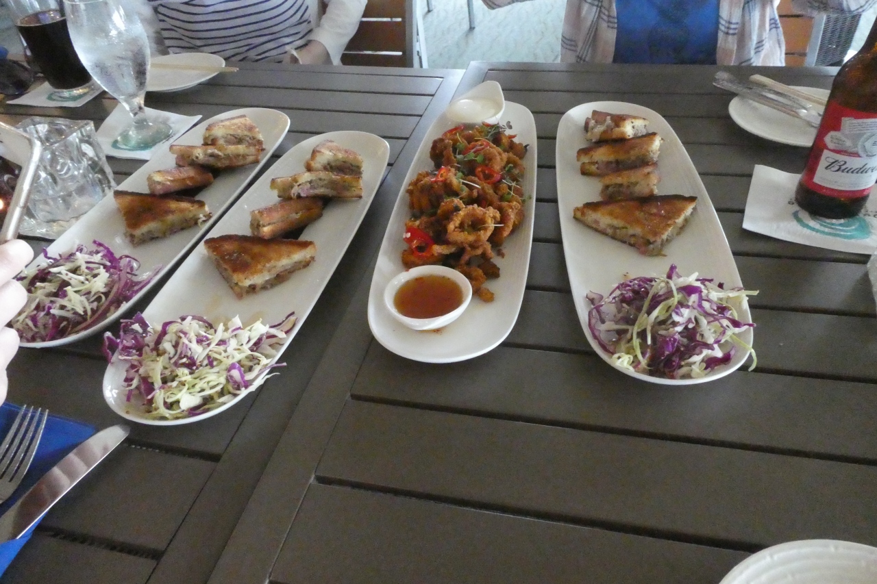 カエナポイントへトレイルの帰りのランチタイムを過ぎていた時間に訪問したため、ランチメニューではなく軽食しか提供できないといわれたが、レストランの雰囲気もよく一休みするにはハレイワの良いロケーションにあるので承諾した。メニューはカラマリとカルアポークのチーズいりSWで美味しくいただいた。駐車場も広くノースに行ったときはガーリックシュリンプだけではなくここでの食事も加えたいと思う。