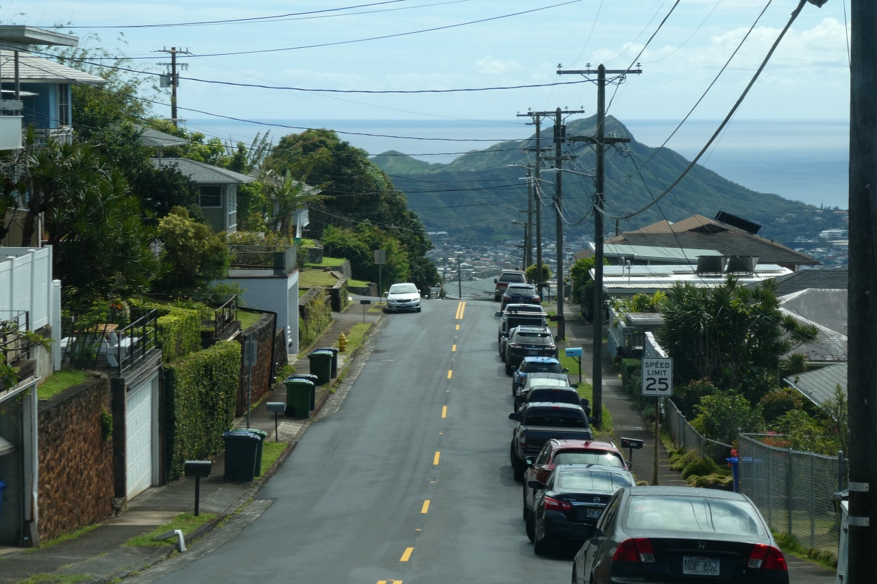 ワイキキから車で10数分のセントルイス・ハイツにあるハワイ州お墨付きのトレイルである。ここはコオラウ山脈山頂を目指す往復約4キロメートルのトレイルで駐車場には多数の車が駐車可能であり、多くのロコたちがハイキングに出かけている。トレイルの入口からすでに珍しい大木が生い茂りマイナスイオンをたっぷり浴びることができる。残念ながら我々は途中で引き返したが、それでも所々で素晴らしい景色がみえることができた。