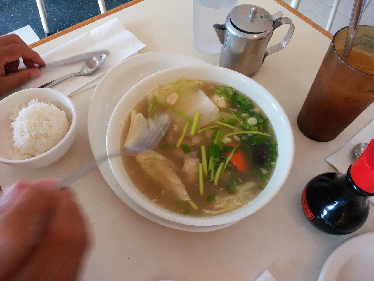 ハワイの昼食代は高すぎ日本の1.5倍から2倍は普通であり、ちょっとしたプレートランチでも15ドル前後するが、この店はテイクアウトのためチップもいらないし、ホリュームもあり安くて美味い。メニューも写真で表示されており、種類も豊富である。お薦めはビーフチョップステーキやスティームフィシュ等枚挙にいとまがない。昼頃にはローカルの人達が多く訪れる。ラハイナのフードランドから山側の道路一本挟んだラハイナスクエアSCの一角にあり、ラハイナ中心地から車がなくても訪れることができる比較的便利なところにあり、駐車場もある。