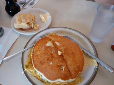 お目当てのオムレツパンケーキとビスケットそれにオックステールスープを注文した。パンケーキは想像よりも美味しく堪能したが、スープは普通とおもった。この店はほかにもフライドライスが人気のようだ。- 旅行時期