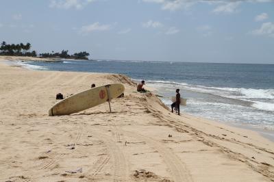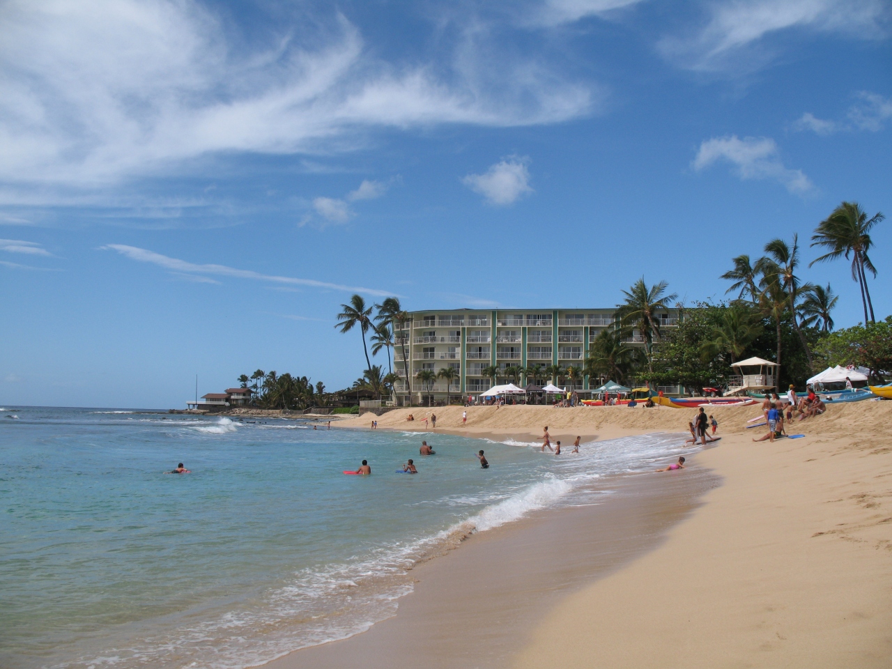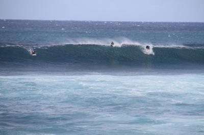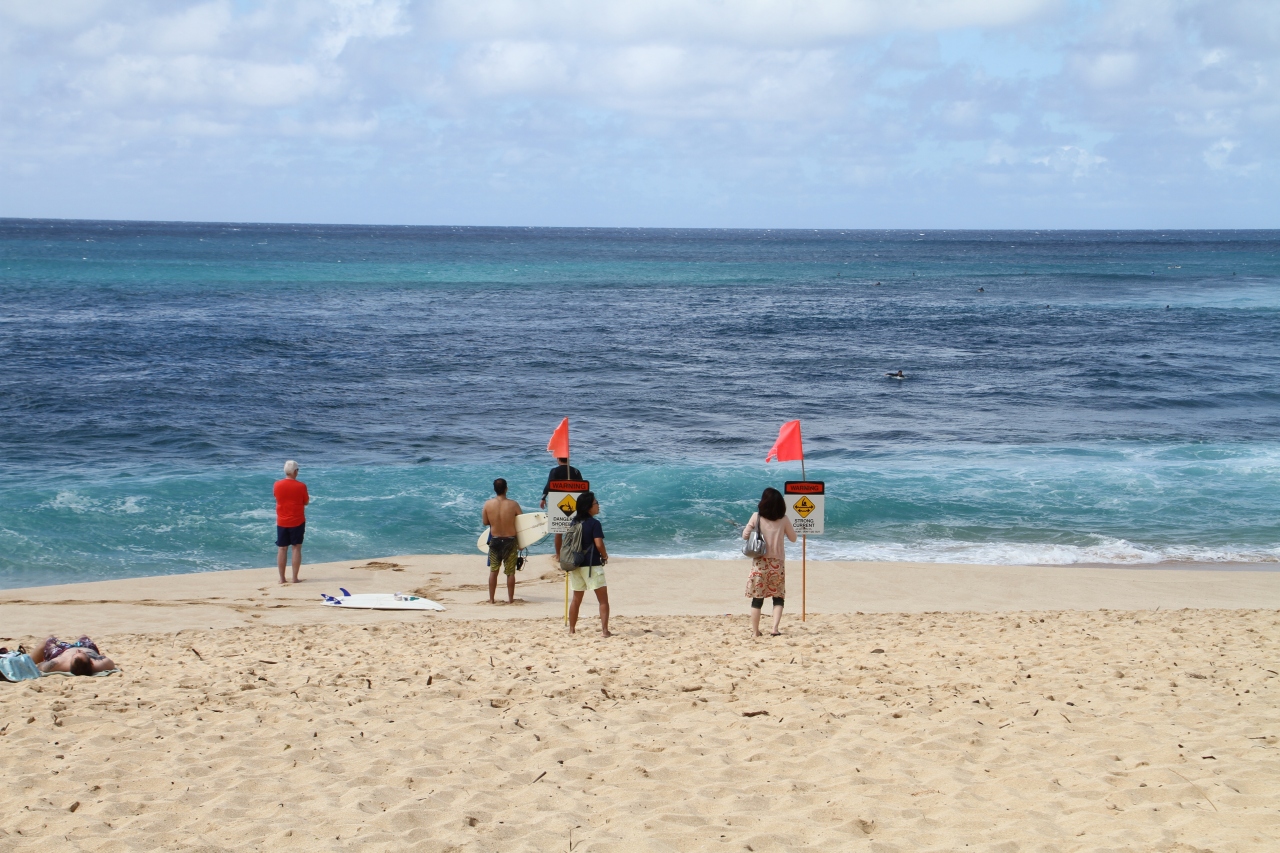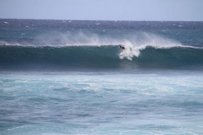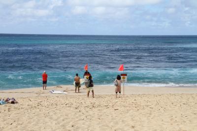 ノースショアーでも人気度NO.1に近いビーチの1つです。冬季には日本で発達した低気圧の影響を受けた波がここに大波を打ち寄せるときがあります。このビーチでサーフィンのエントリーするにはプロ級に準じたサーファーしか無理でしょうし、危険です。多くのツアーバスや車が停車しているのですぐわかります。駐車場にはトイレにシャワー施設もありますので、島内一周の途中やハレイハ観光時に少し足をのばして休憩がてら寄って見て下さい。沖合には鯨が見える時もあります。