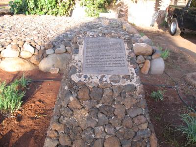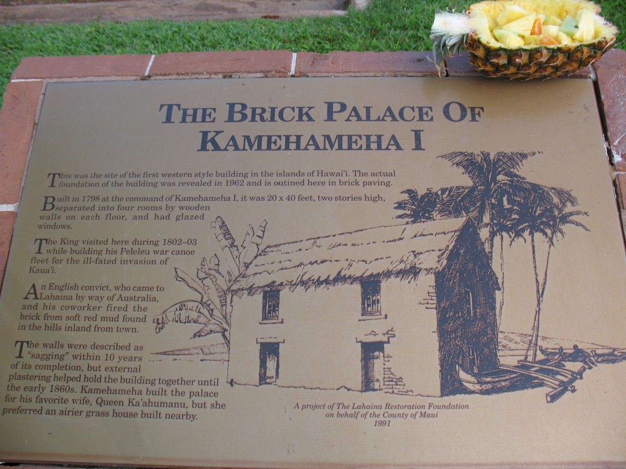 19世紀初頭にカメハメハ大王がカアフマヌ妃のために立てたハワイで最初の西洋建築物でレンガ造りの宮殿だったそうですが、同妃は住むことなく倉庫として使われてたそうです。19世紀後半には崩壊してしまい、現在は写真のような跡地になっています。史跡はパイオニアインの隣の緑地帯の中にありますが、注意しないと気が付かないまま行きすぎてしまう程度のものです。