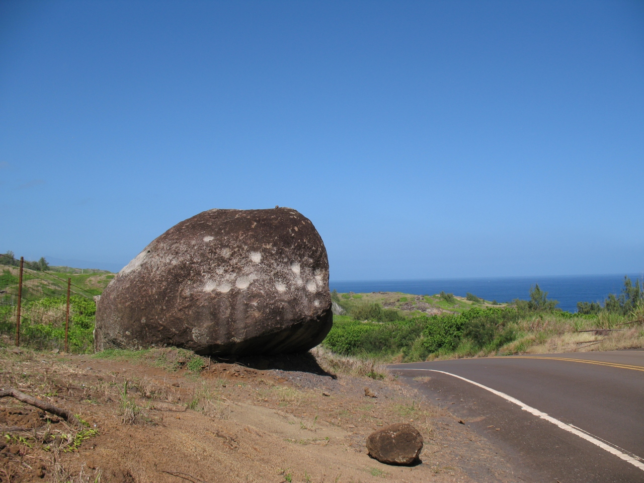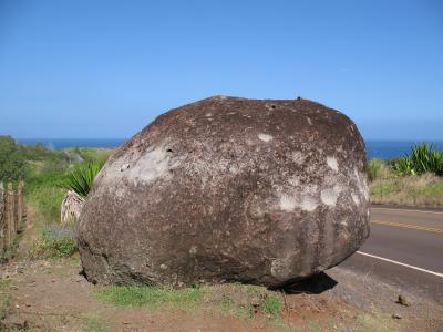 カパルアからホノルアを経てハワイ先住民たちが暮らすカハクロア方面に20分近く走行し、ナカレレのブローフォールを過ぎて少し行くと道路の端この奇妙な岩がたっています。試しはしませんでしたが、中は空洞になっていて叩くと音がするらしい。何故かはっきりしていないようです。パワーストーンらしいのでスピリチュアルなパワーを感じて見ましょう。