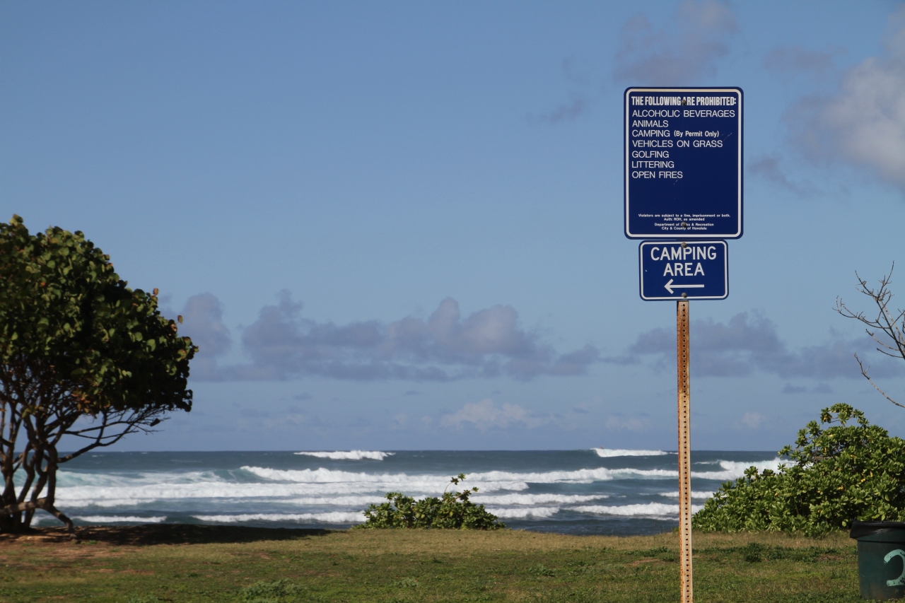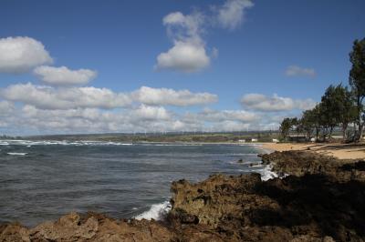 ハレイワのアリィビーチパークの西側近くのこのビーチパークは公園内を周遊する道路があるくらい広いのが唯一のメリットかも。入口から徒歩だと海側まで時間がかかります。公園内にはキャンプ場にトイレ等の設備はありますが、砂浜はハレイワサイドに少しあるだけで大半が岩礁にかこまれています。ホヌをみるのには適しているのかもしれませんが、見ていません。のんびり潮風にあたりながらノースの海をながめるのにはよいでしょう。