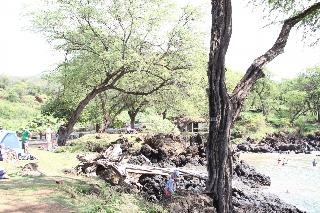 メイン道路のマケーナ・アラヌイロードから細めのマケーナロードに入りマケーナ湾に面したところにあります。駐車場に更衣施設もありますが、エントリする少しの砂浜以外岩礁地帯ですので、水泳よりもスキンダイビングに適している場所でしょう。駐車場は10数台おけるようですが、結構こんでいます。ダイビングしない人は木陰で本を読んだり優雅にすごしています。ここはホヌが見られることで隠れた人気があるようです。