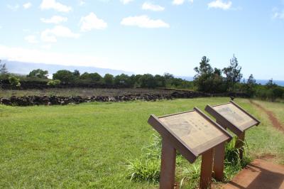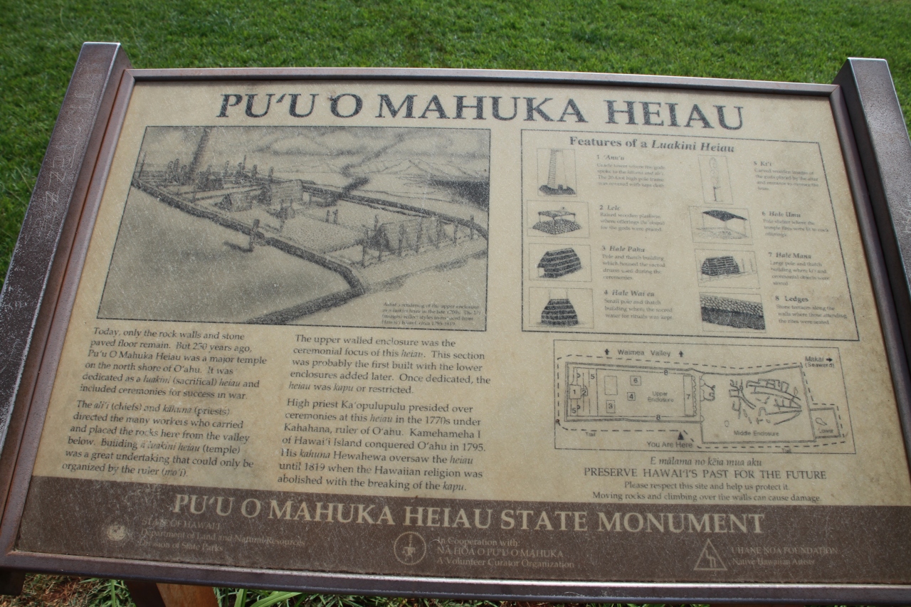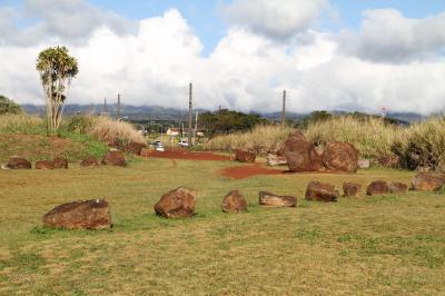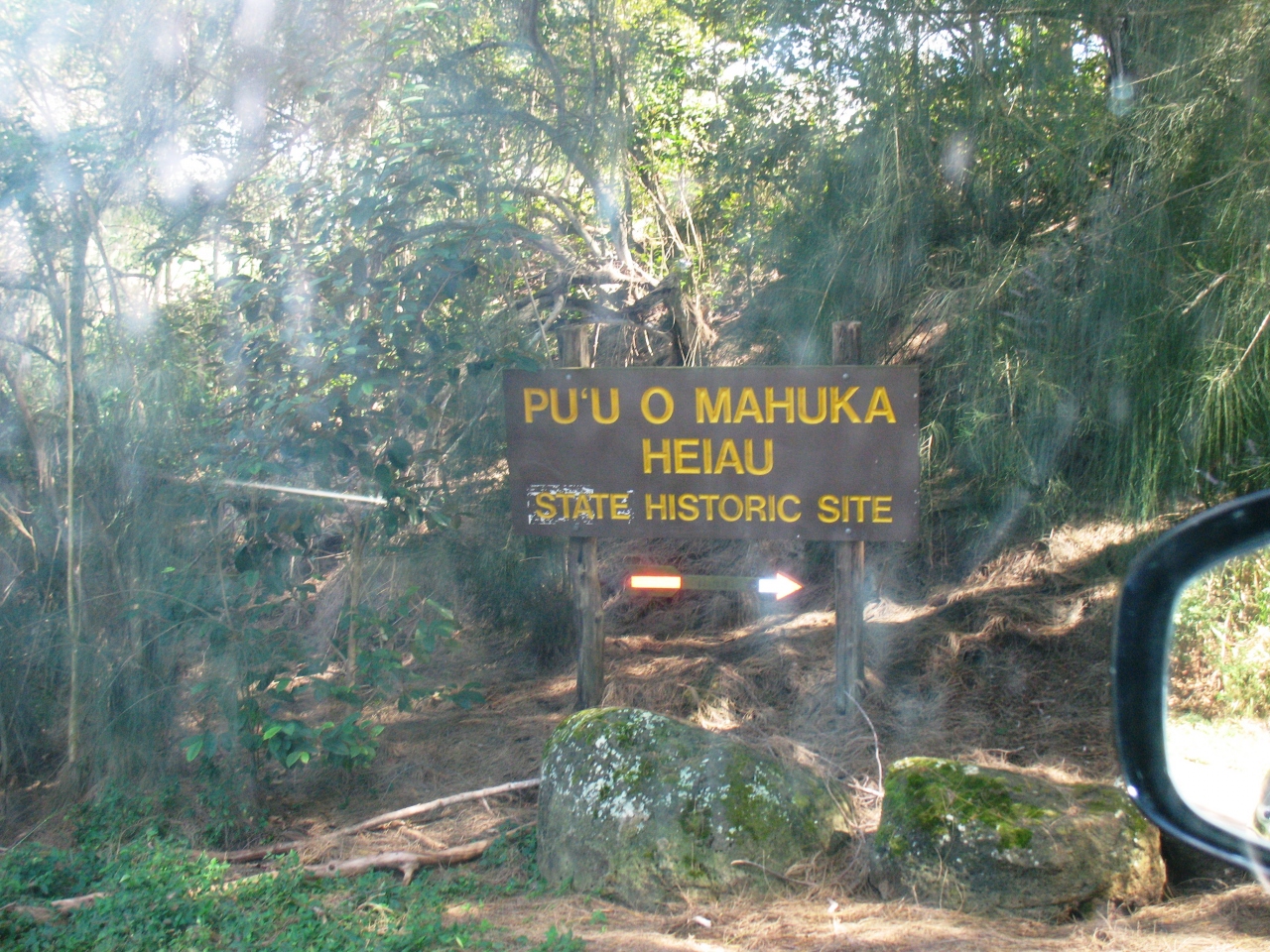アクセスはノースショアーのフードランドの横の道ププケアロードに入り急カーブなど過ぎ3、4分走ると右側にプウオマフカヘイアウの看板゛見えます。その細い小道を終点まで行くとヘイアウの駐車場があります。ヘイアウの横の獣みちを進むとワイメア湾が綺麗にのぞめるそうですが、私たちは途中断念しました。- 旅行時期