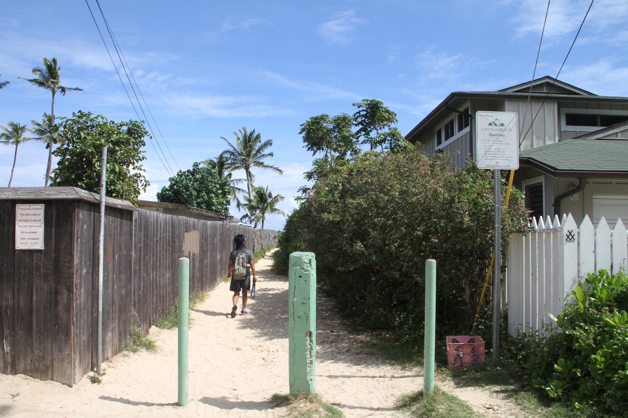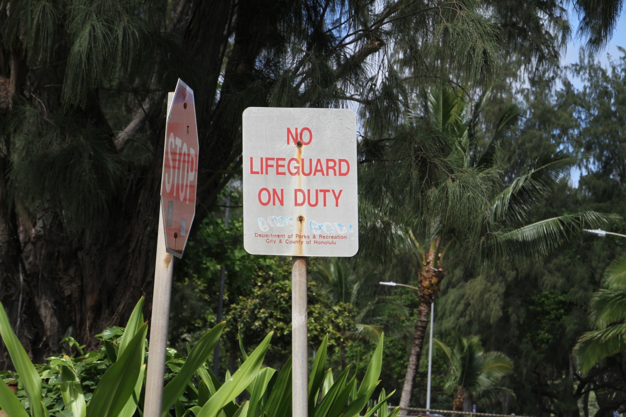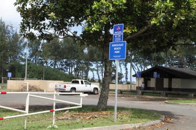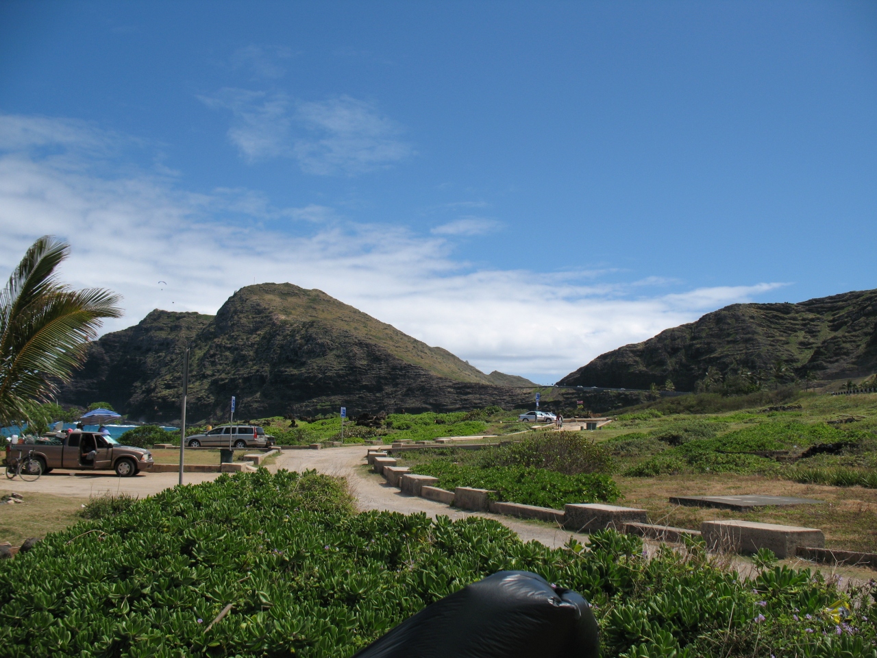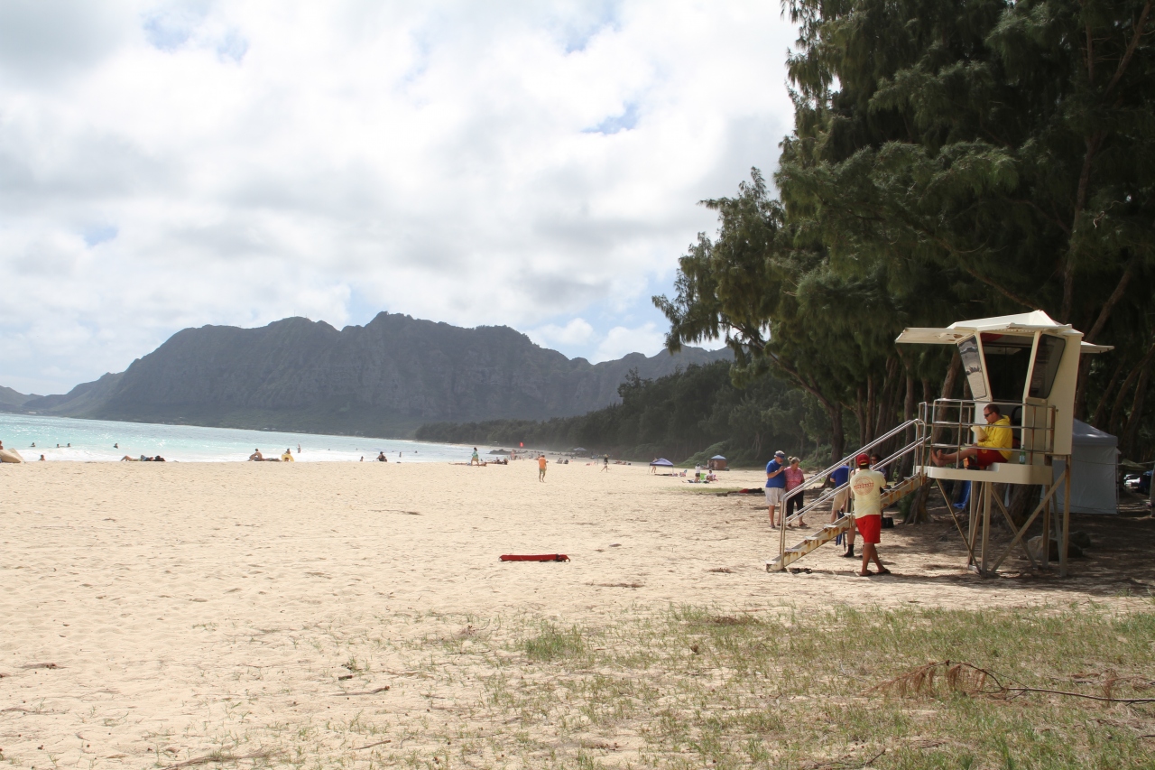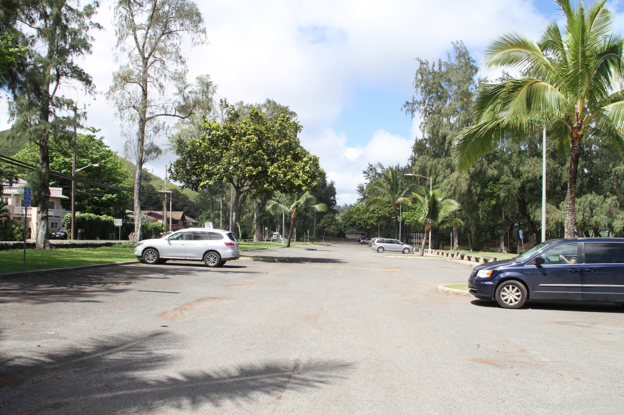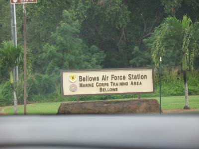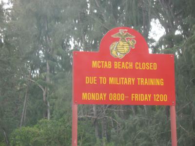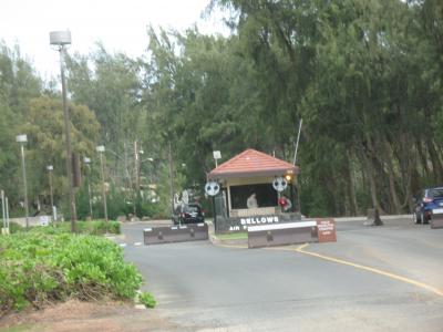 ワイマナロベイビーチの隣に金曜日の午後から月曜日の朝までしか我々一般人は入れないベローズフィールドビーチパークがあります。72号線から軍の訓練場のティンカーロードに右折します。この開放日にはゲートには誰もいません。このロードをしばらく走ると海岸近くに何か所も駐車場がありますので、余裕で停められます。更に進むと検問所があり、一般人は入れませんし、検問所の前を海に出たところに岩場がありますが、その岩場より北側の軍専用のベローズフィールドビーチパークは立ち入りは出来ないようです。