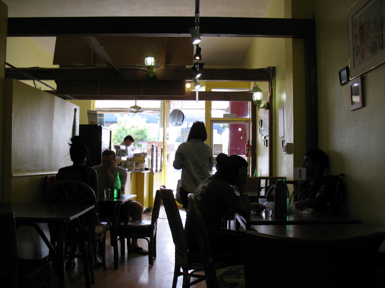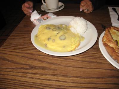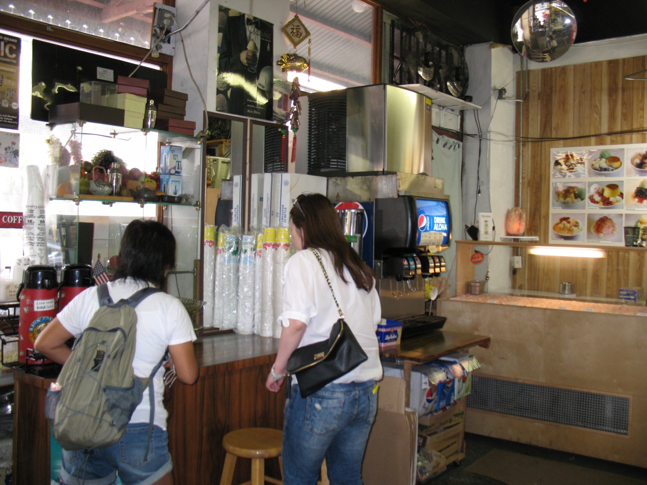 アラモアナ店は日本人が多いだろうと敬遠し日曜日にカリヒ店をめざしましたが、どっこいロコで行列をなしていました。止むを得ずその日はあきらめ翌日の月曜日の9時過ぎに行くと比較的すんなり席に案内されました。その後はロコで満員状態で待ちがはいっていました。
