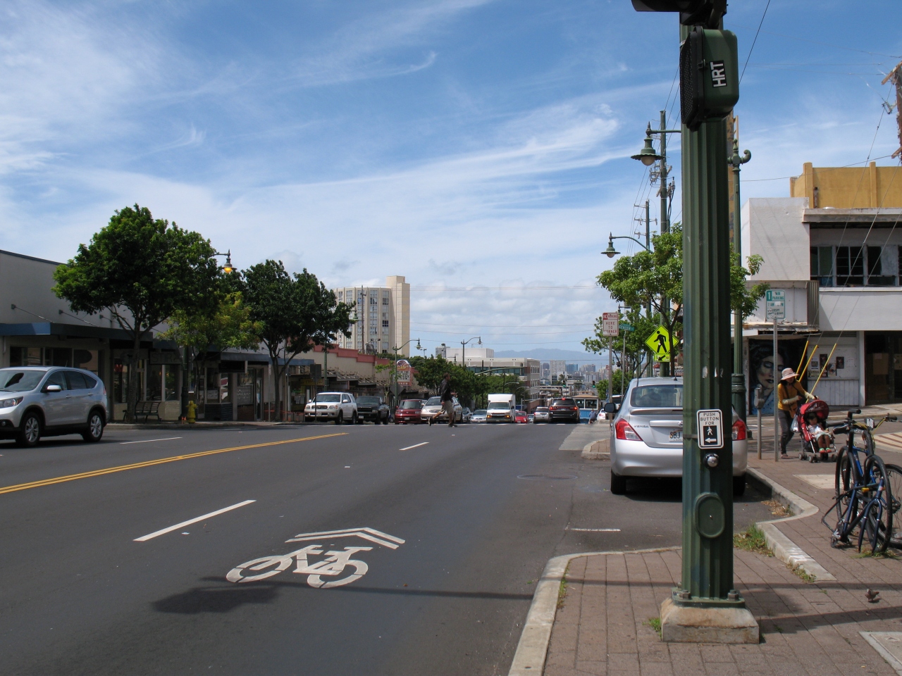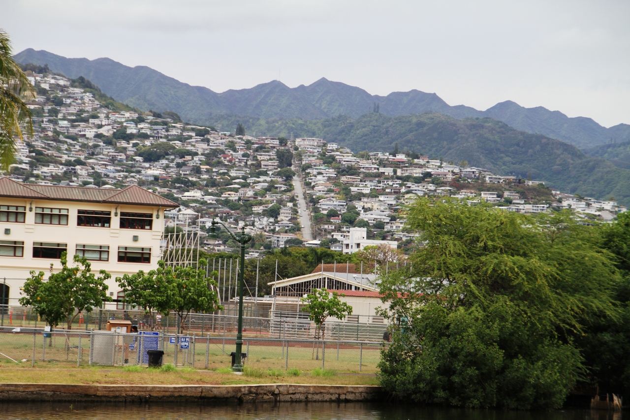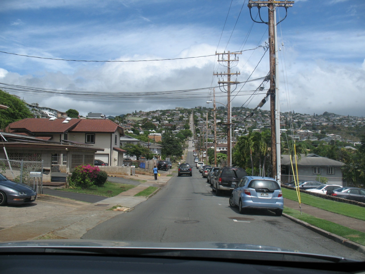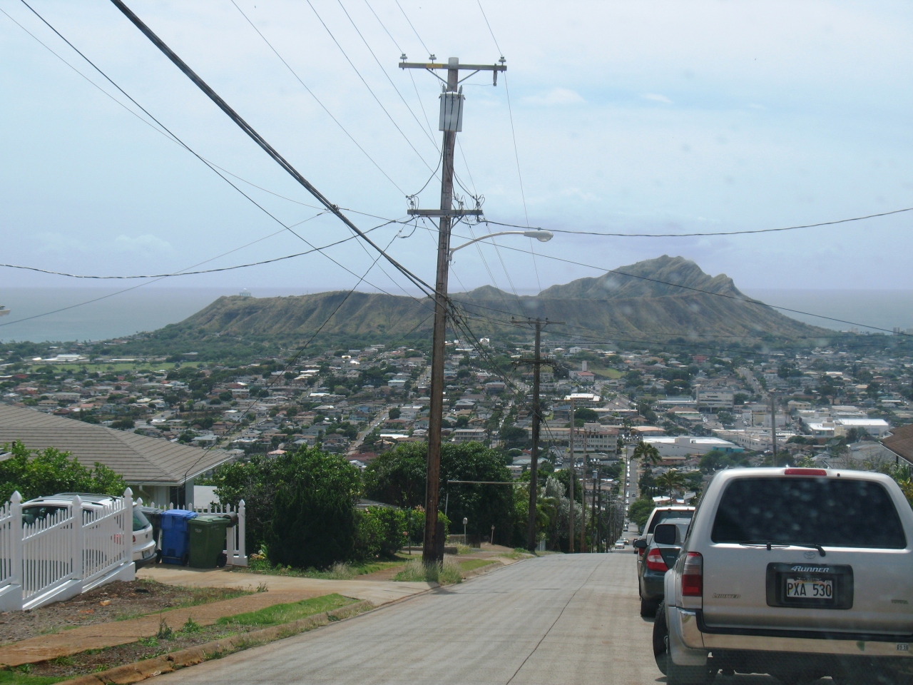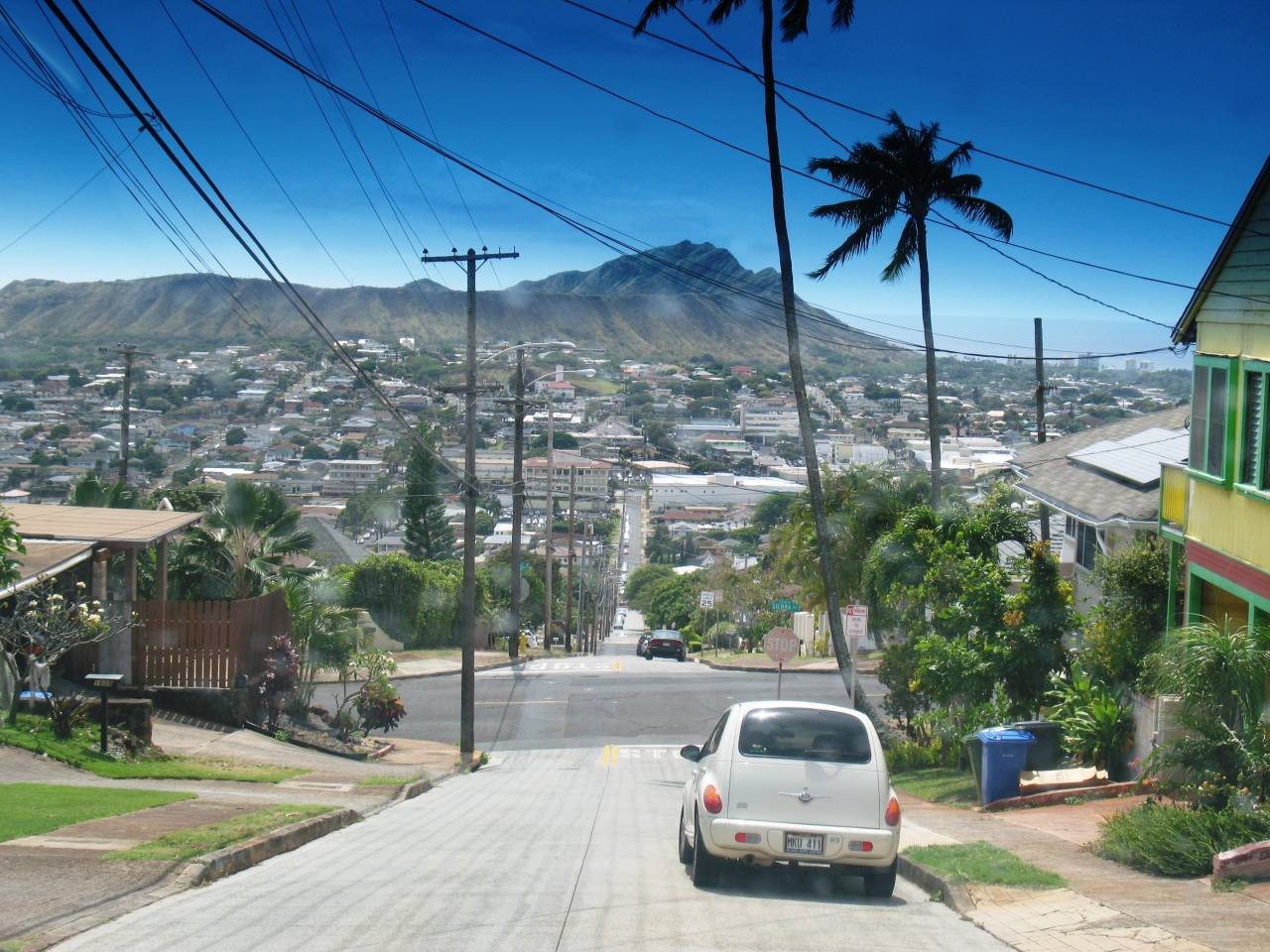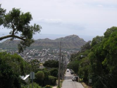 アラワイ運河沿いからカイムキ方面を眺めた時、空に駆け上がるような一直線の道が見えるのをご存じでしょうか。それがWilhelmina Riseです。ワイアラエ アベニューでカハラモール方面に走行し13th Aveの手前を左折するとその道に入ります。道路は片側にところどころ車が駐車していますので、対向する車と譲り合いながら登らなければなりませんが、岡の上からダイヤモンドヘッドがみえる方向の景色は素晴らしいです。