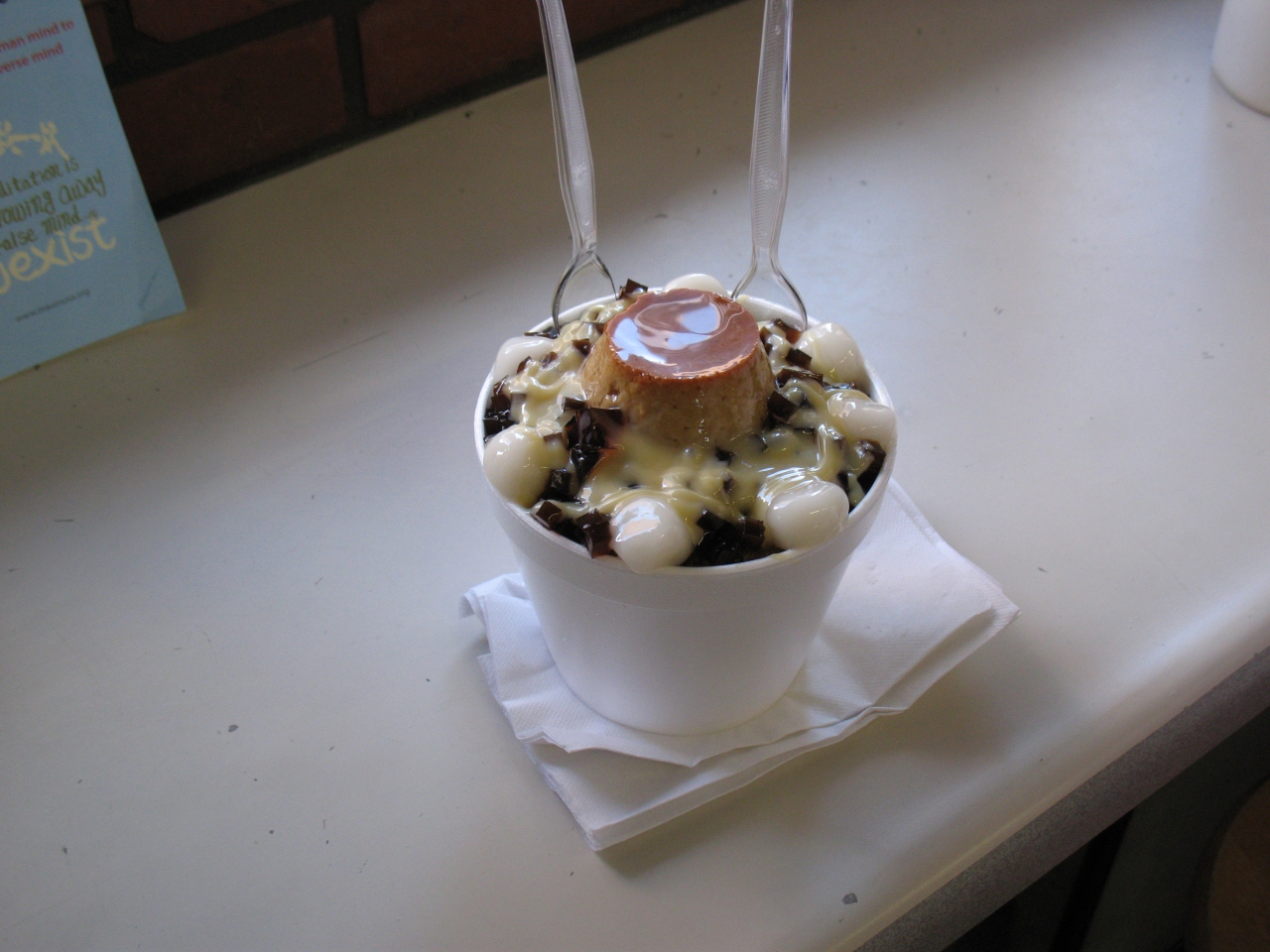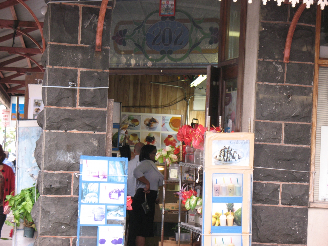ダウンタウンのアラケア通りとマーチャント通りの角にシェイプアイス店が新規オープンしロコの人気店になっているらしいということで行ってきました。シェイプアイス店は果物や生け花を売っている店内の奥にあり、イートインできるスペースもあります。一押しはシェイプアイス・コーヒーモンスターです。コーヒープリン、コーヒーゼリーにシロップが入りモチボウル(白玉)がトッピングされています。カップの底に近づくとアイスクリームが出てきます。一般のシェイプアイスと違うおいしさがあり、一度食べると癖になりそうです。値段は7ドル強だったと思います。オープンは月~金が10:00~16:30、土日は12:30~16:30です。