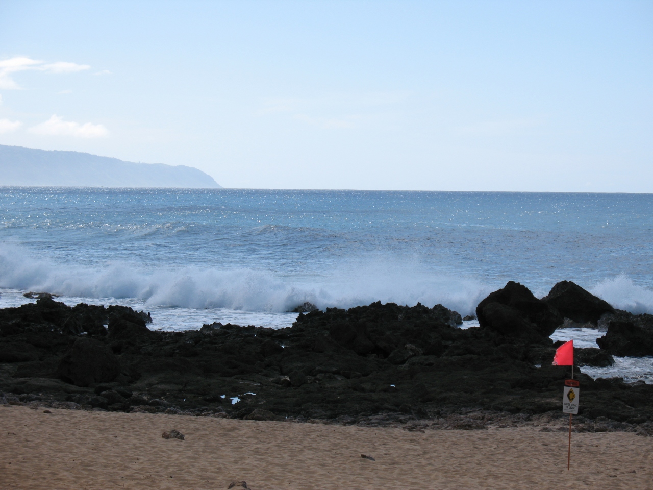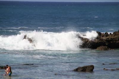 プウオマハカヘイアウを見学ついでに寄ったビーチです。ノースのフードランドの前のビーチといった方がわかりやすいでしょう。ビーチとしてのシャワーやトイレは整備されています。ビーチの数十メートル先は岩礁にかこまれていますので、冬季でもその中の波の程度は大きくはありません。時々岩礁を超えて大波が進入はしてきますが。亀も見られるようなのでシュノーケルに適しているようです。