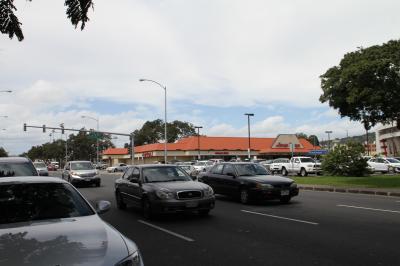 この神社は大半の人が高速上から見かけたことがあると思いますが、いくのは少し複雑です。ワイキキからですとペレタニア通りを西進するとノースキング通りになります。それをしばらく走行しオーテーリング通りに右折H1直前のオロメロ通りに右折すればすぐです。