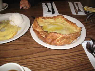 ダッチベイビーは外カリカリ中ふわふわでこれは毛嫌いしていた私にうまいと唸らせました。オムレツもなかなのものでした。