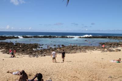 一般人はその岩場より南側のベローズフィールドビーチパークが許可されているようです。写真の通りビーチは広く波は少しありますが、綺麗で遠浅で、更衣室、シャワー、トイレがあり、開放日にはライフガードがいるようです。- 旅行時期