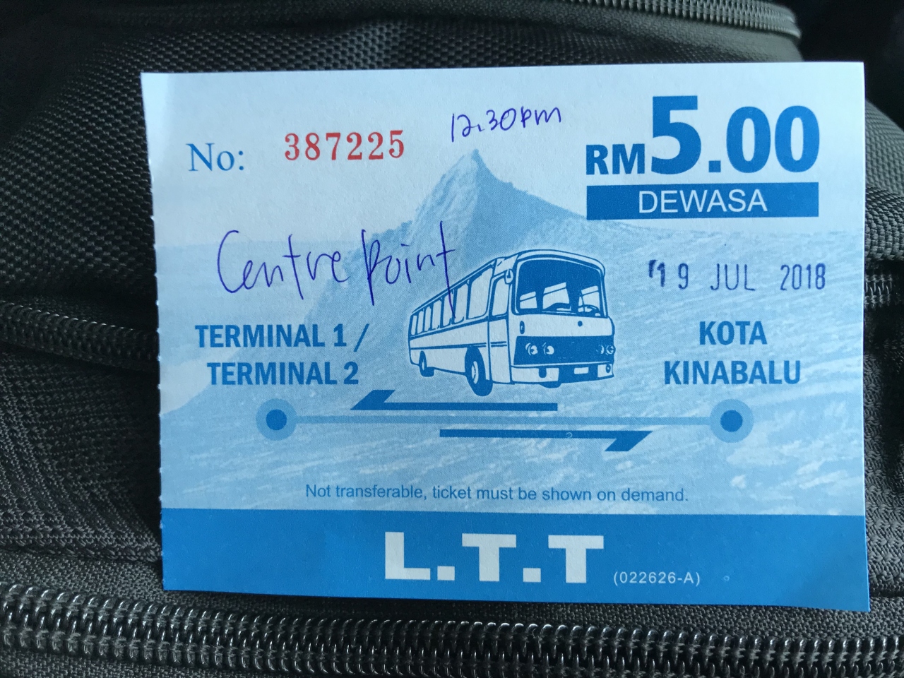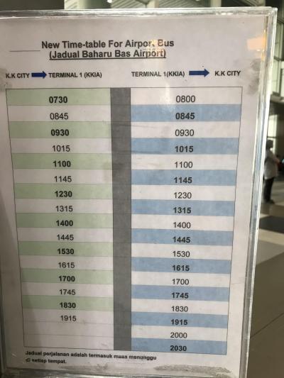 到着ロビーを出たところにカウンターがあり、チケットを購入します。料金は5リンギット。空港発は8時から45分間隔で20時30分まで。市内からは7時30分、8時45分のあとは45分間隔で19時30分まで。ガイドブックには所要時間45分となっていますが、昼の渋滞のない時間帯では10分強で市内に到着しました。道路が混雑する17時発のバスでHorizon Hotel近くのバス停から空港に向かった際は10分弱遅れでバスがやってきて、空港までの所要時間は25分ほどでした。空港から市内へ向かうバスは小型バスの座席が8割ほど埋まりましたが、空港に向かう際はほかに乗客は1人もいませんでした。