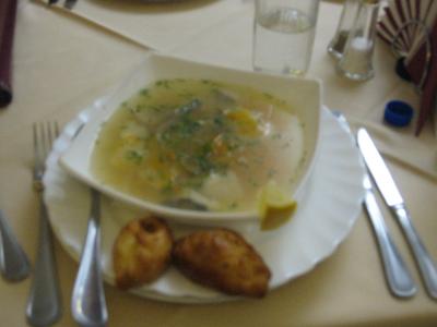 宿泊していたジムチェージナ・ホテルから歩いて5分ほど。ウラジオストク駅からも近く、アクセスは非常に良かったです。店に入った時にちょうど日本人の母娘がいて「美味しかったですよ」との声。期待しつつ、魚のスープ、ウハーとビーフストロガノフを注文。ついでにビールか、今回のロシアの旅で飲んでいないウォッカを飲もうかなと思ったのですが、メニューにアルコールがない。お店の人に聞いてみると、なんとアルコールはないという。店内には肖像画などが掲げられて落ち着いた雰囲気だし、料理はとてもおいしかった。ただ、一緒にアルコールを飲みたかったなあというのが正直な気持ち。ルーブルが下がっていたこともあって、コストパフォーマンスも良かったのでそこだけが残念です。