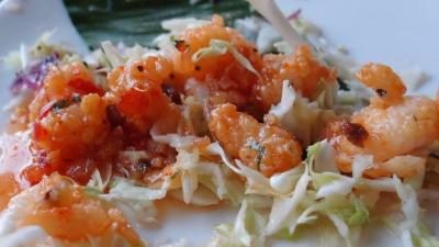 さて、私たちはランチで訪れ、ガーリックシュリンプと、