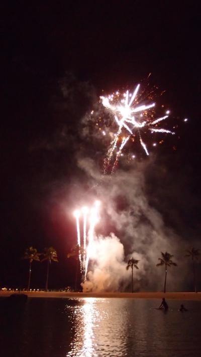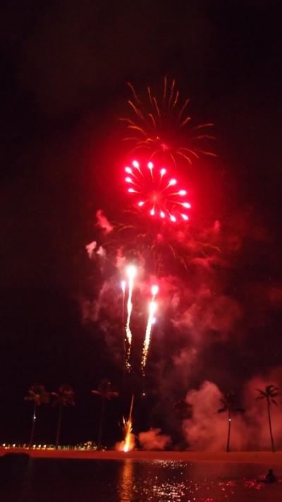 ヒルトンハワイアンビレッジでは毎週金曜日の夜、ラグーン横のビーチから花火を打ち上げてます。