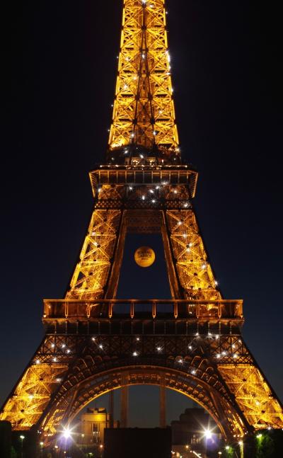 エッフェル塔のシャンパンフラッシュ。ほんの5分程しか光ってないけど、綺...