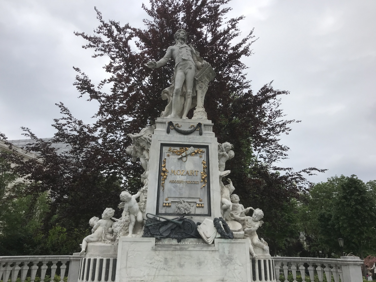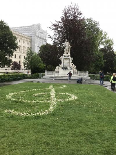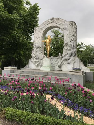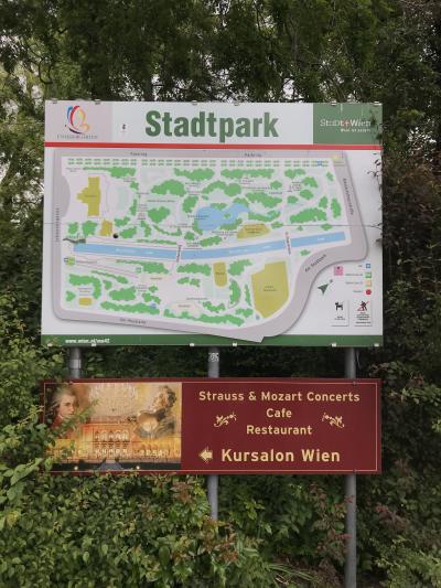 市立公園内にあり、場所はクアサロンの近くです。ヨハンシュトラウスがヴァイオリンを弾いている像で、像自体が金色なので、遠くからもとても目立っていました。