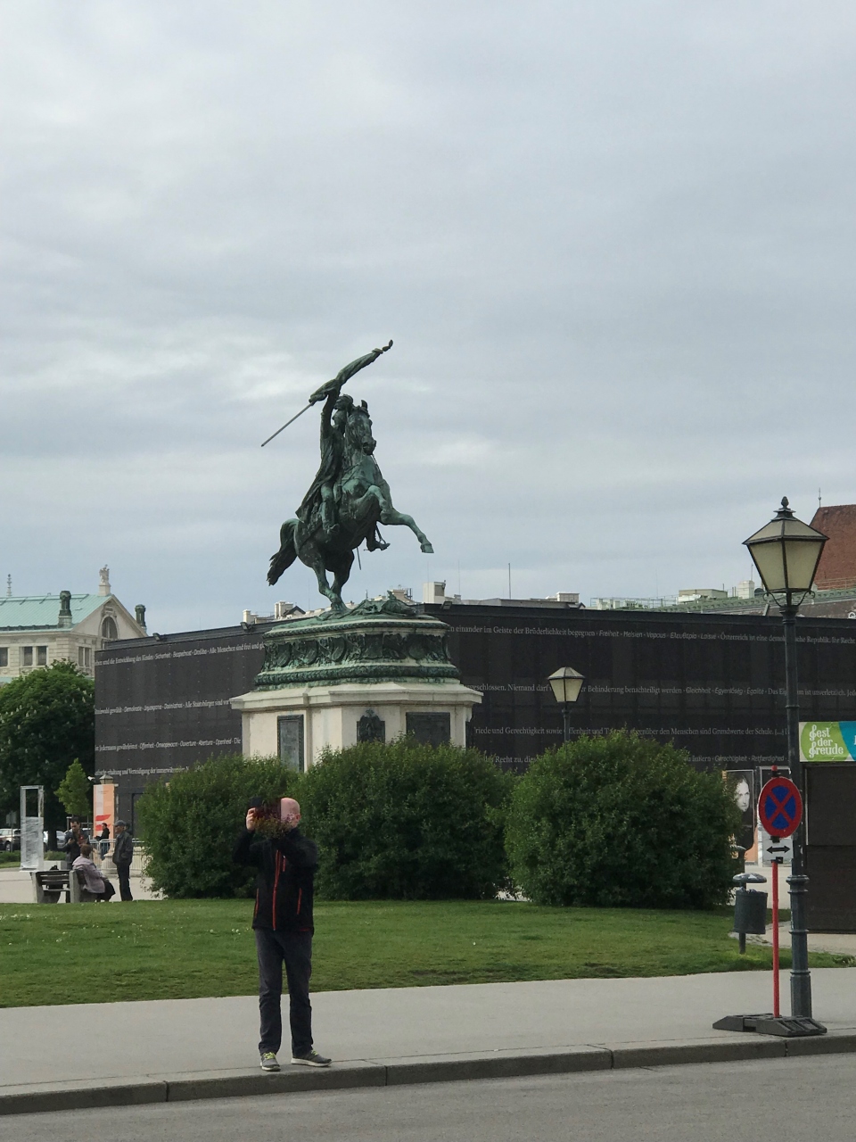英雄広場にある像です。向かい合うように建てられているオイゲン公の像とセットで見ると良いと思います。旗を持って手を挙げる騎馬像で、オイゲン公像よりも、この像の方が躍動感を感じました。また、後ろ脚二本のみで支えられて建っており感心するつくりです。