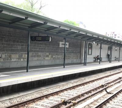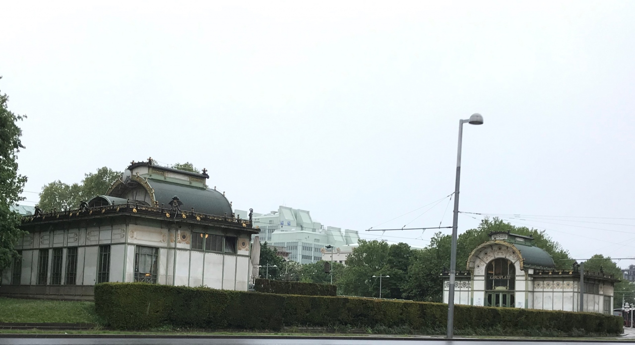 駅舎が芸術作品になっています。向かいあうようにして、同じデザインの建物が建っていました。それぞれ博物館とカフェになっていて、博物館側には地下鉄の入口があります。