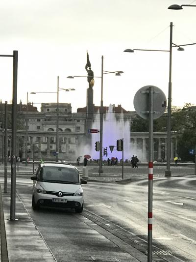 巨大なモニュメントと噴水があります。巨大なモニュメントは、ソビエト戦勝記念碑という第二次世界大戦にかかる記念碑だそうです。その前にある噴水も、高く上がりダイナミックで見応えがあります。