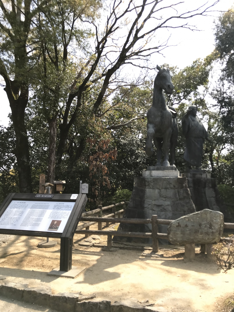 高知城追手門に入る前に設置されていました。槍を持って、馬にまたがる騎馬像です。高知城の表門である追手門から観光を始めると、ちょうど最初に目に入る場所です。土佐藩初代藩主として、高知城の象徴だと感じました。