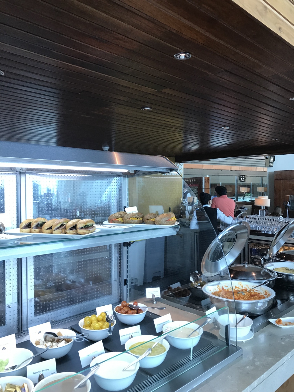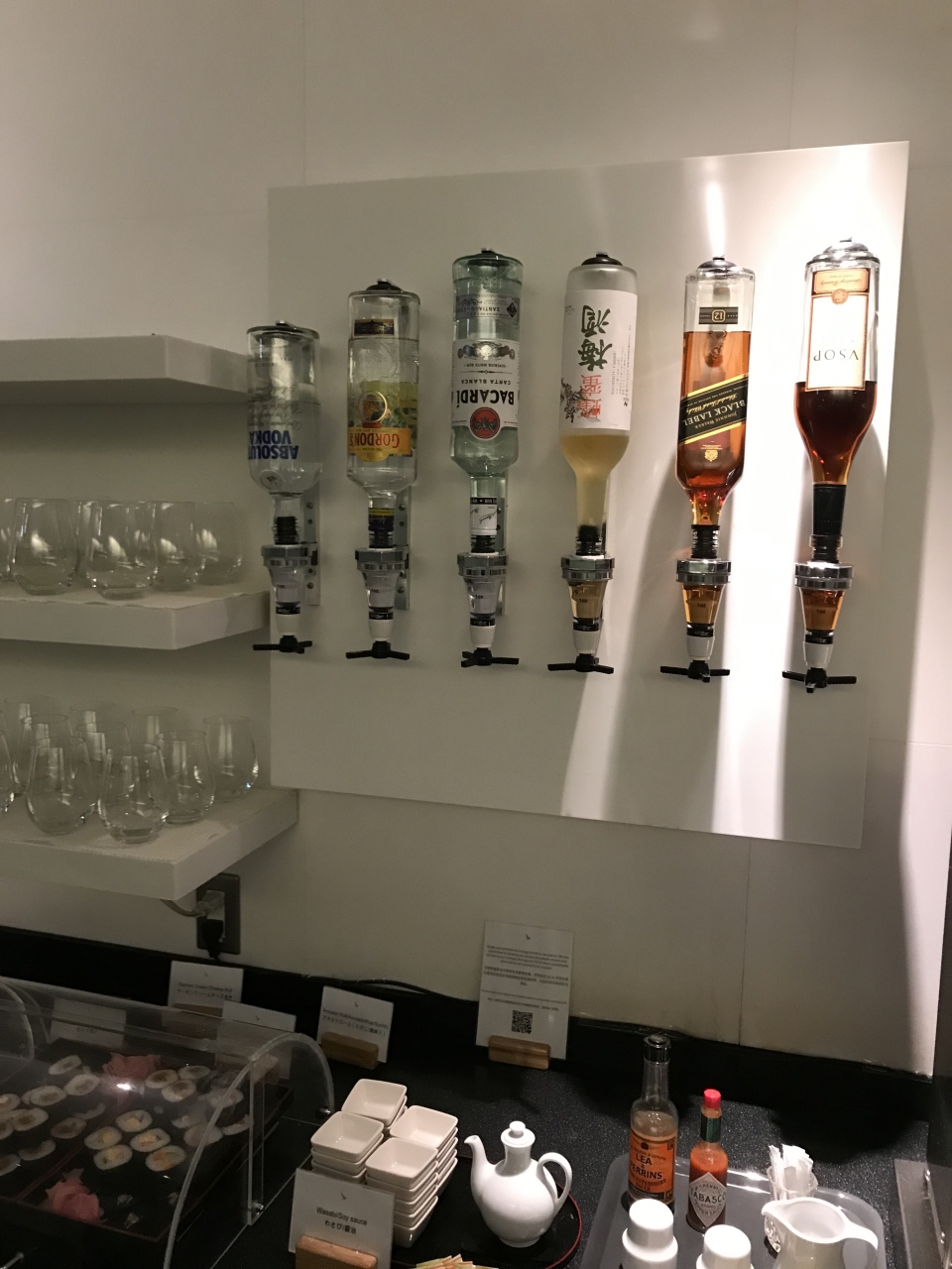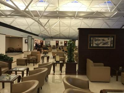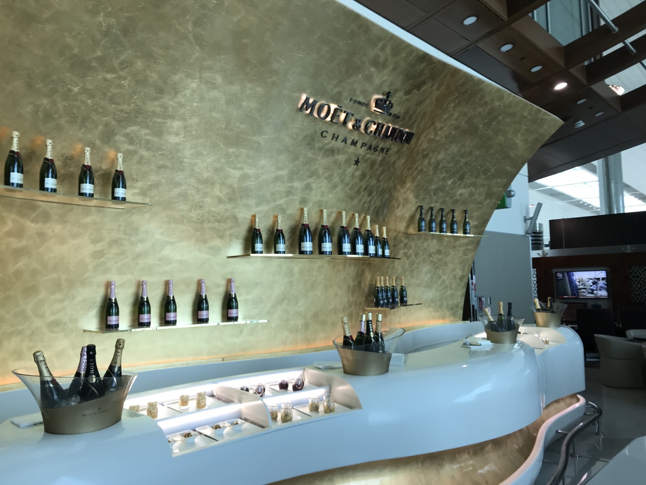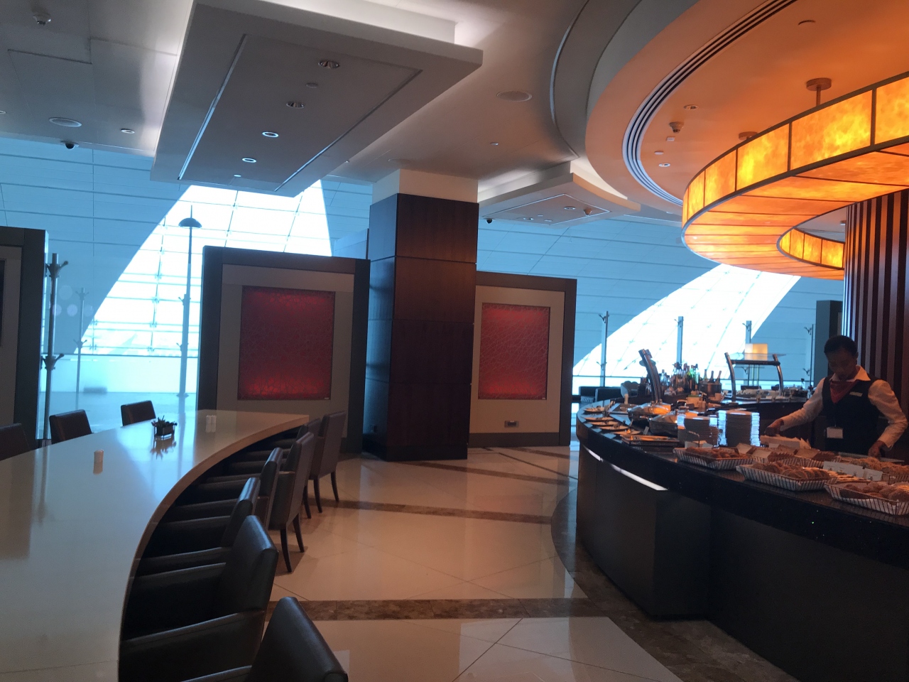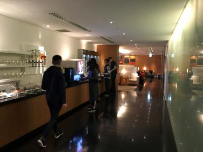 非常に広いラウンジです。料理は、アジア料理、西洋料理、カフェコーナーなど、各種類揃っていて、フードコートのようでした。また、シャンパンラウンジがあり、各種モエ・エ・シャンドンが飲み放題でした。子供用のプレイルームもあり、ゲーム機も置かれていました。