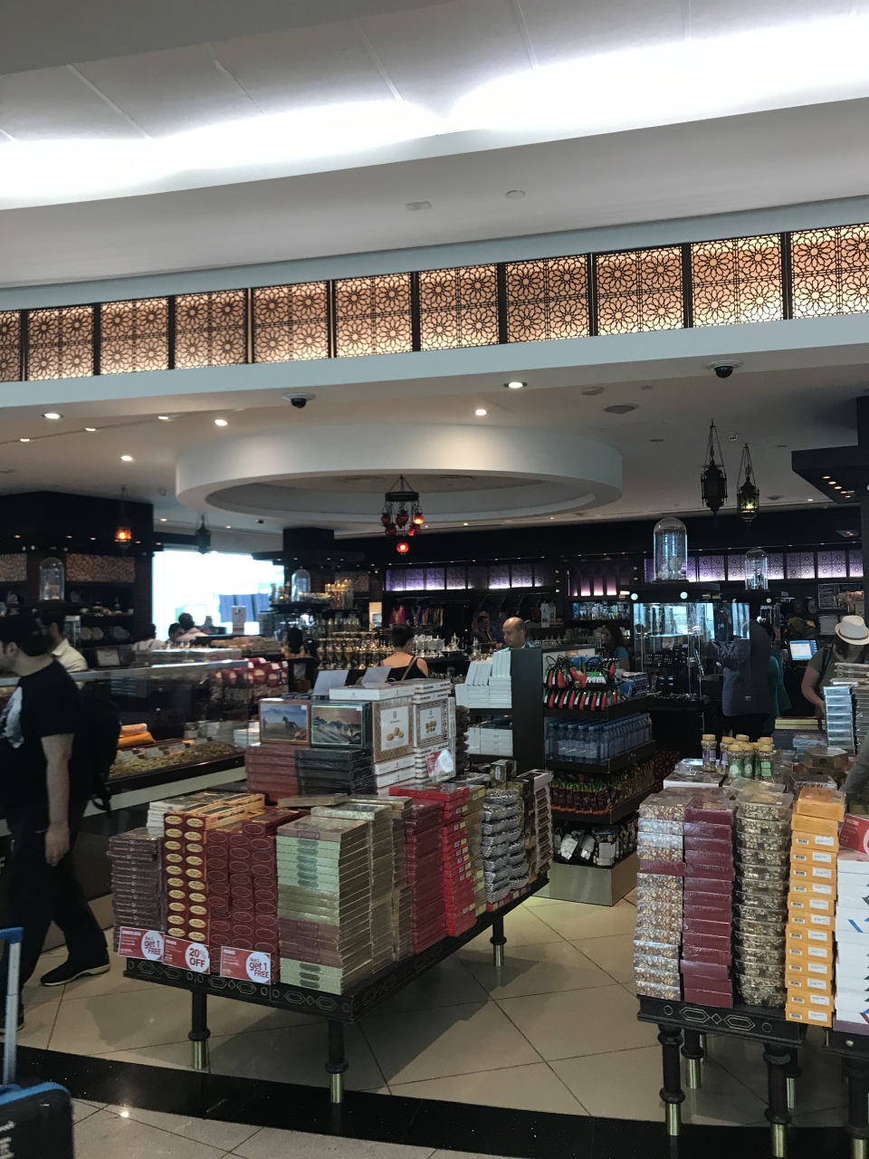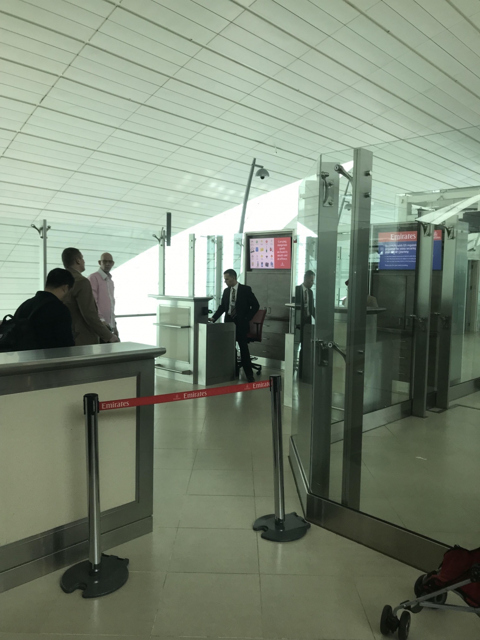 欧州へ行く際の乗り継ぎで往復利用しました。エミレーツ航空利用だったので、ターミナル3でした。乗り継ぎは、赤い看板で「CONNECTIONS」と書かれた案内を目指して進みます。手荷物検査がありました。売店では、ドバイ土産らしいお土産が揃っていました。